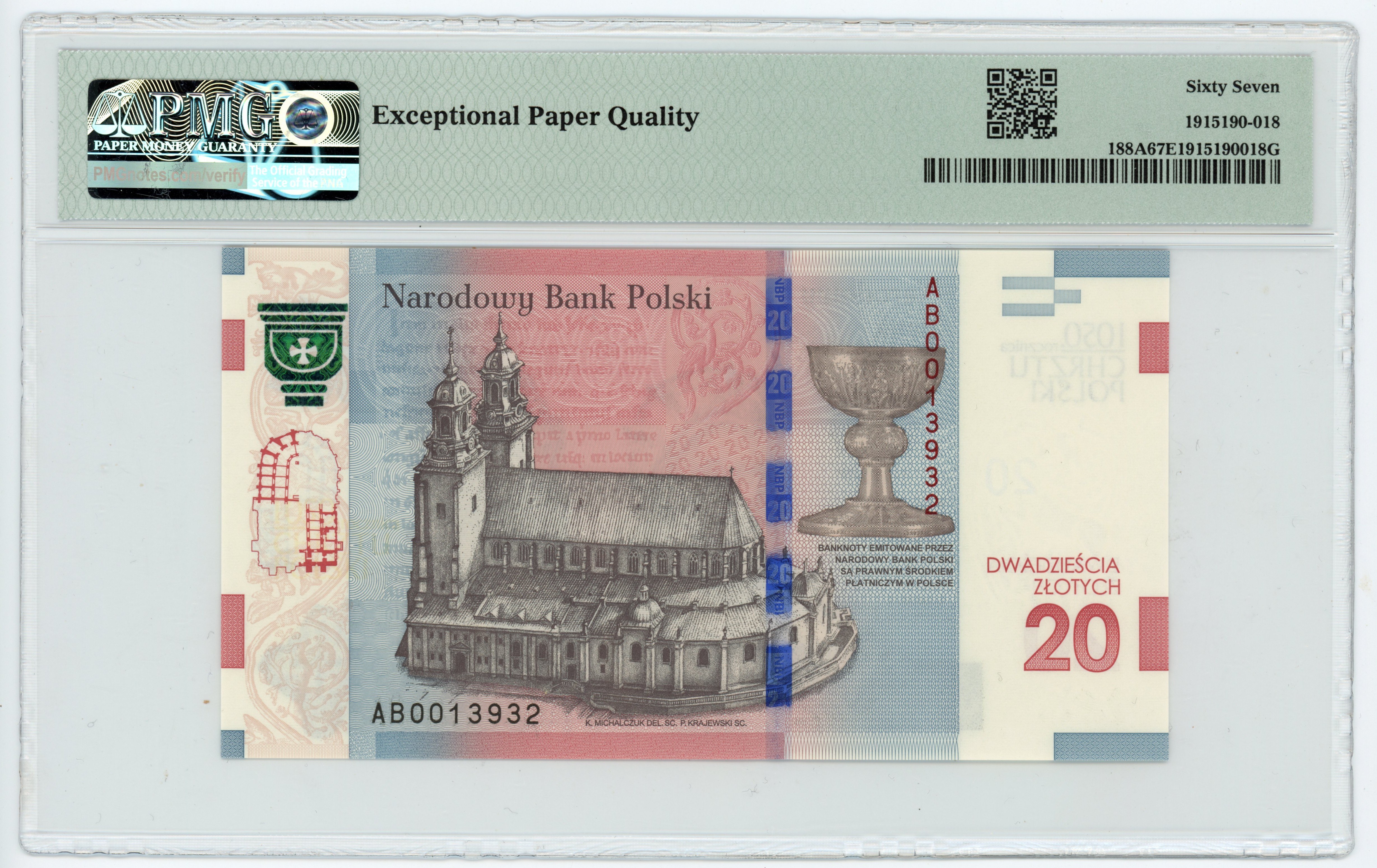 Banknot w gradingu, dołączone dedykowane etui oraz folder emisyjny.