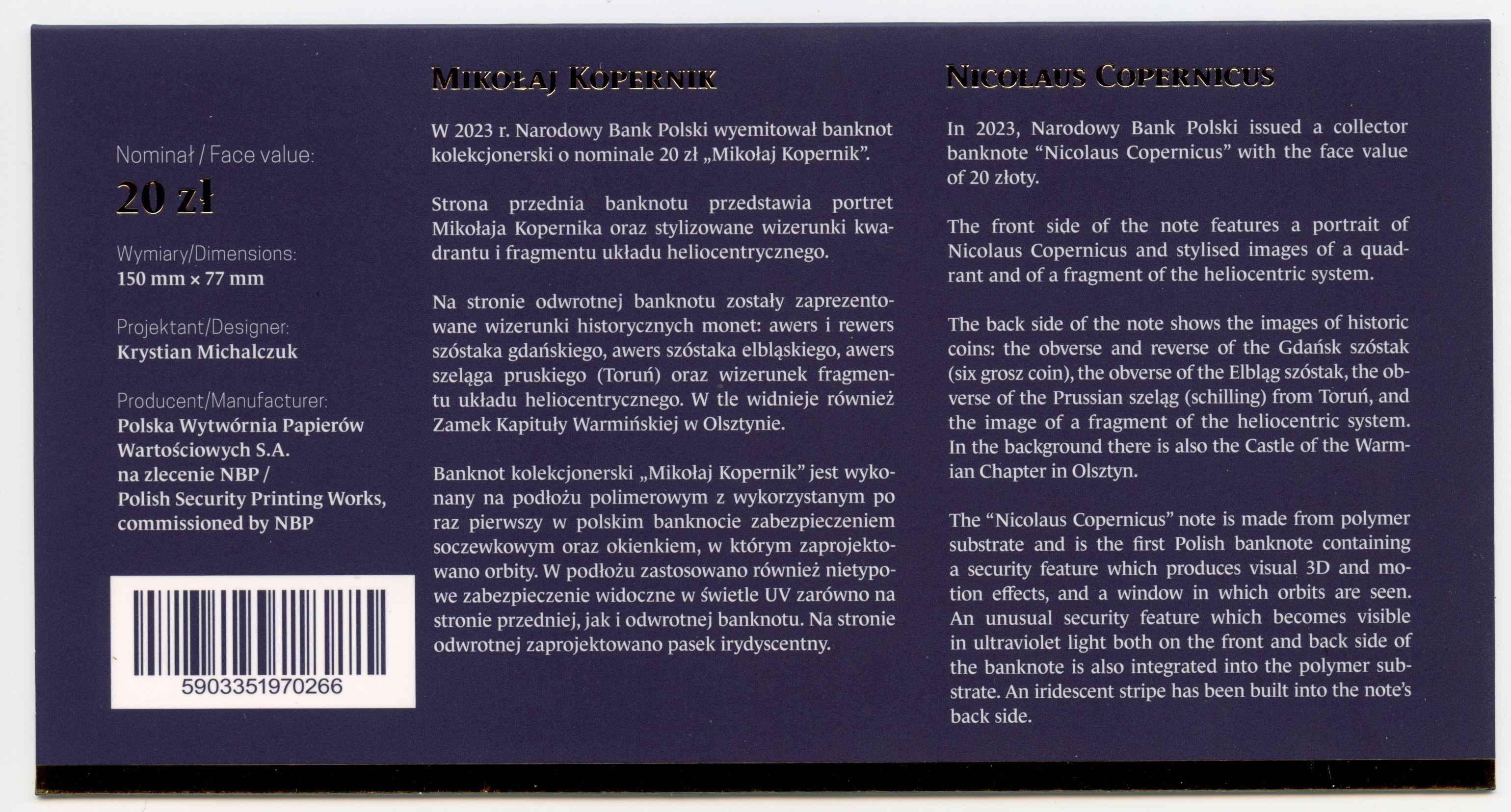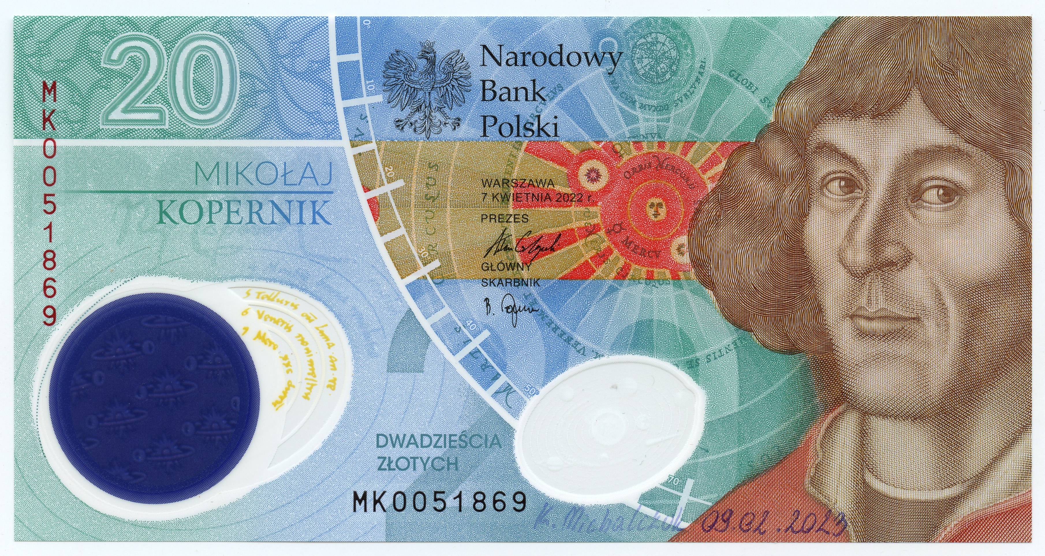 20 złotych 2022 Mikołaj Kopernik z autografem projektanta K.Michalczuk 09.02.2023