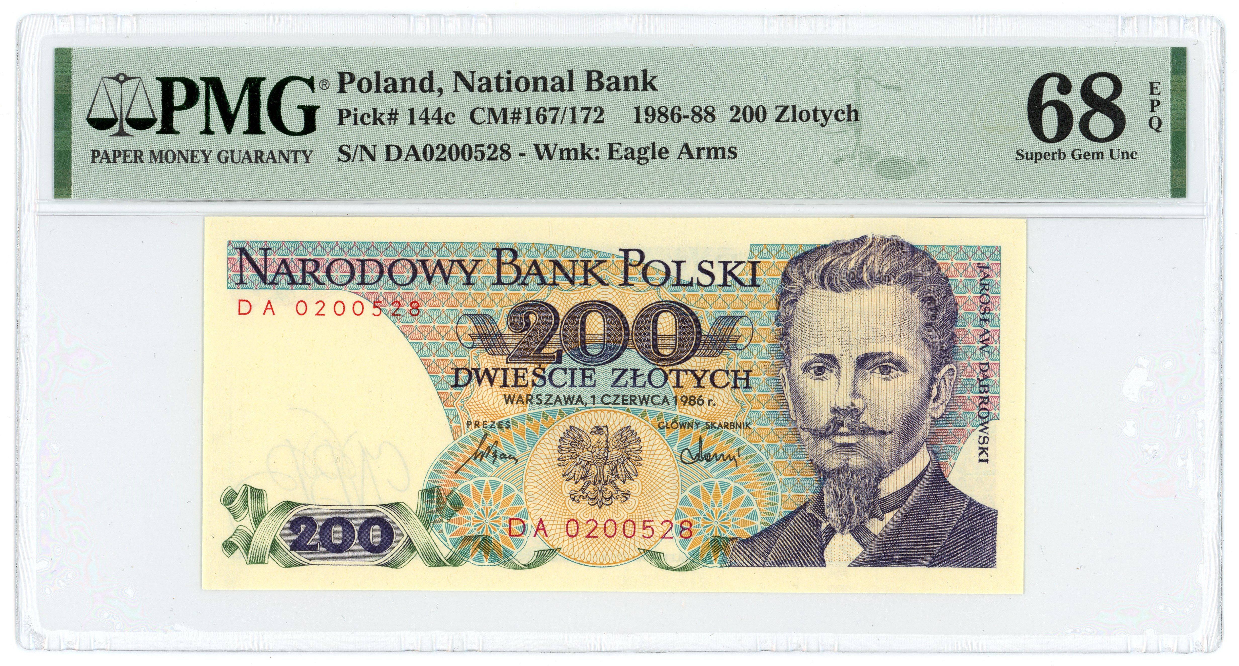 200 złotych 1986 - seria DA - PMG 68 EPQ