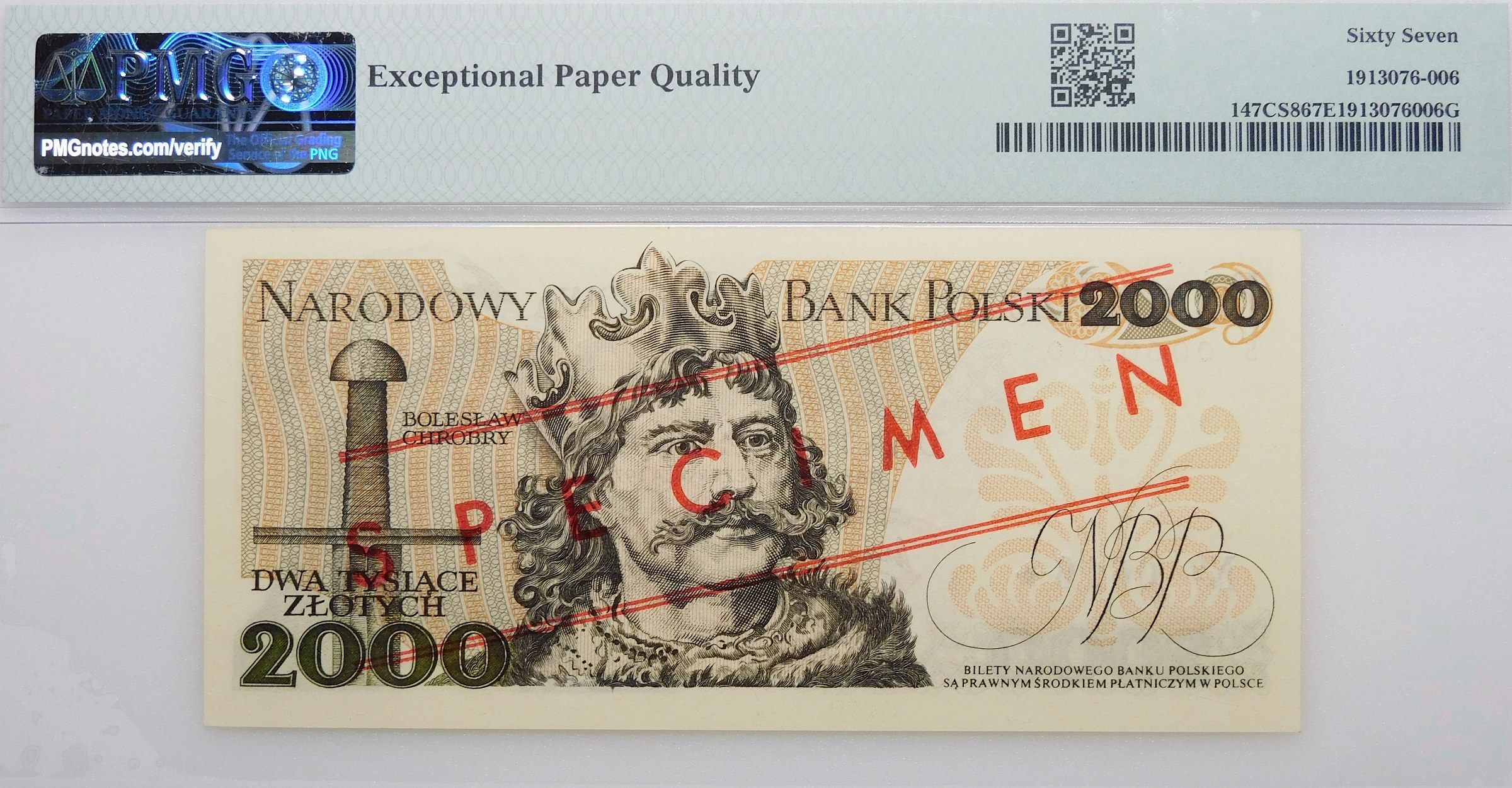 Atrakcyjny egzemplarz, potwierdzony wysoką notą gradingową PMG, dodatkowo adnotacja EPQ świadcząca o wyjątkowej jakości papieru.