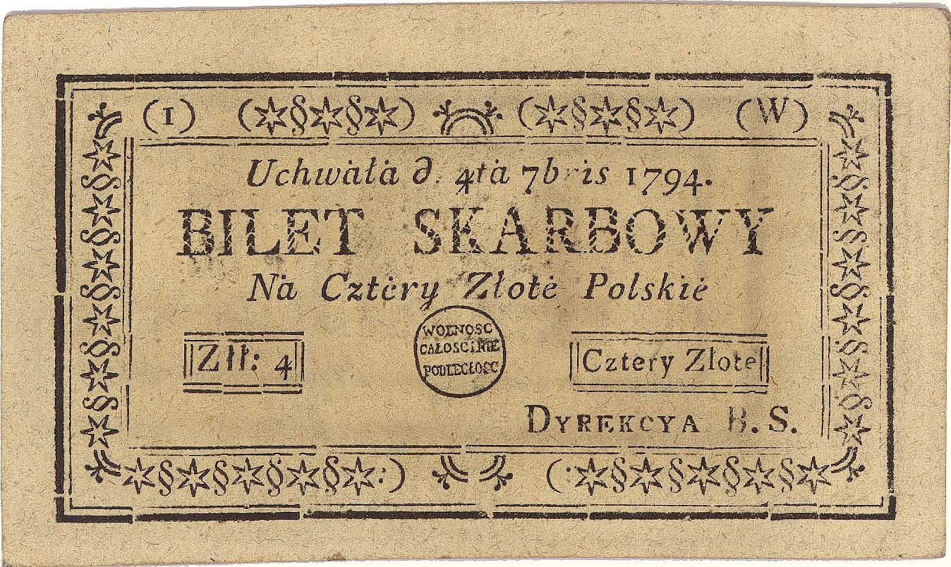 4 złote polskie 4.09.1794, seria 1-W, Miłczak A11a