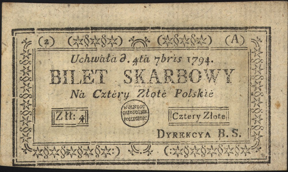Insurekcja Kościuszkowska 1794, 4 złote polskie 4.09.1794, seria 2-A, Miłczak A11e, Lucow 44a (R0)