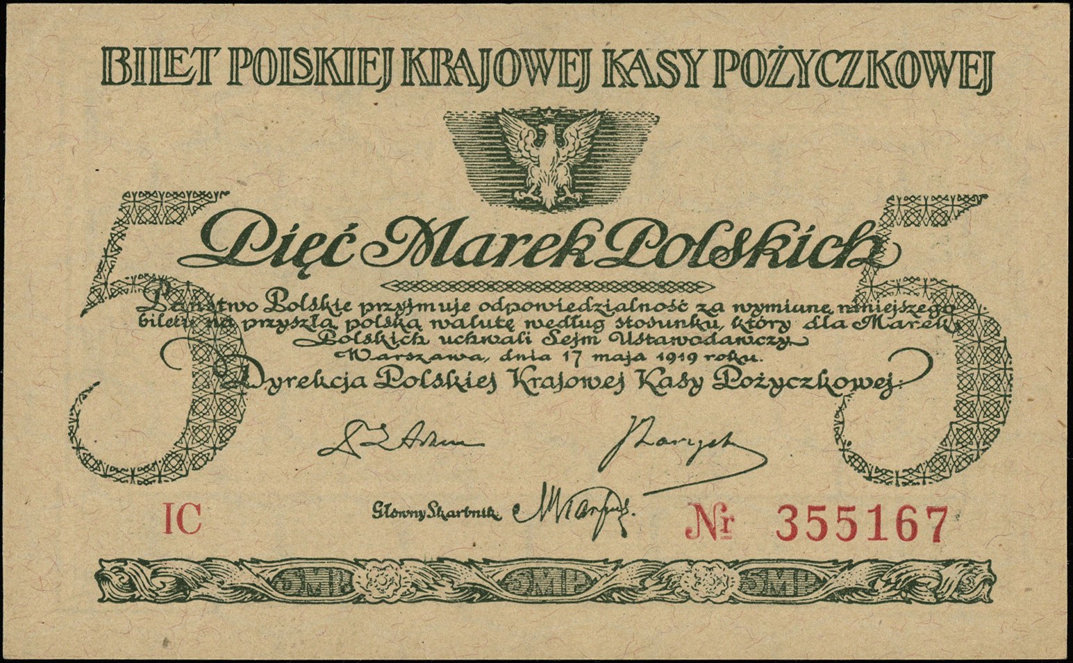 5 marek polskich 17.05.1919, seria IC, Miłczak 20c, Luc...