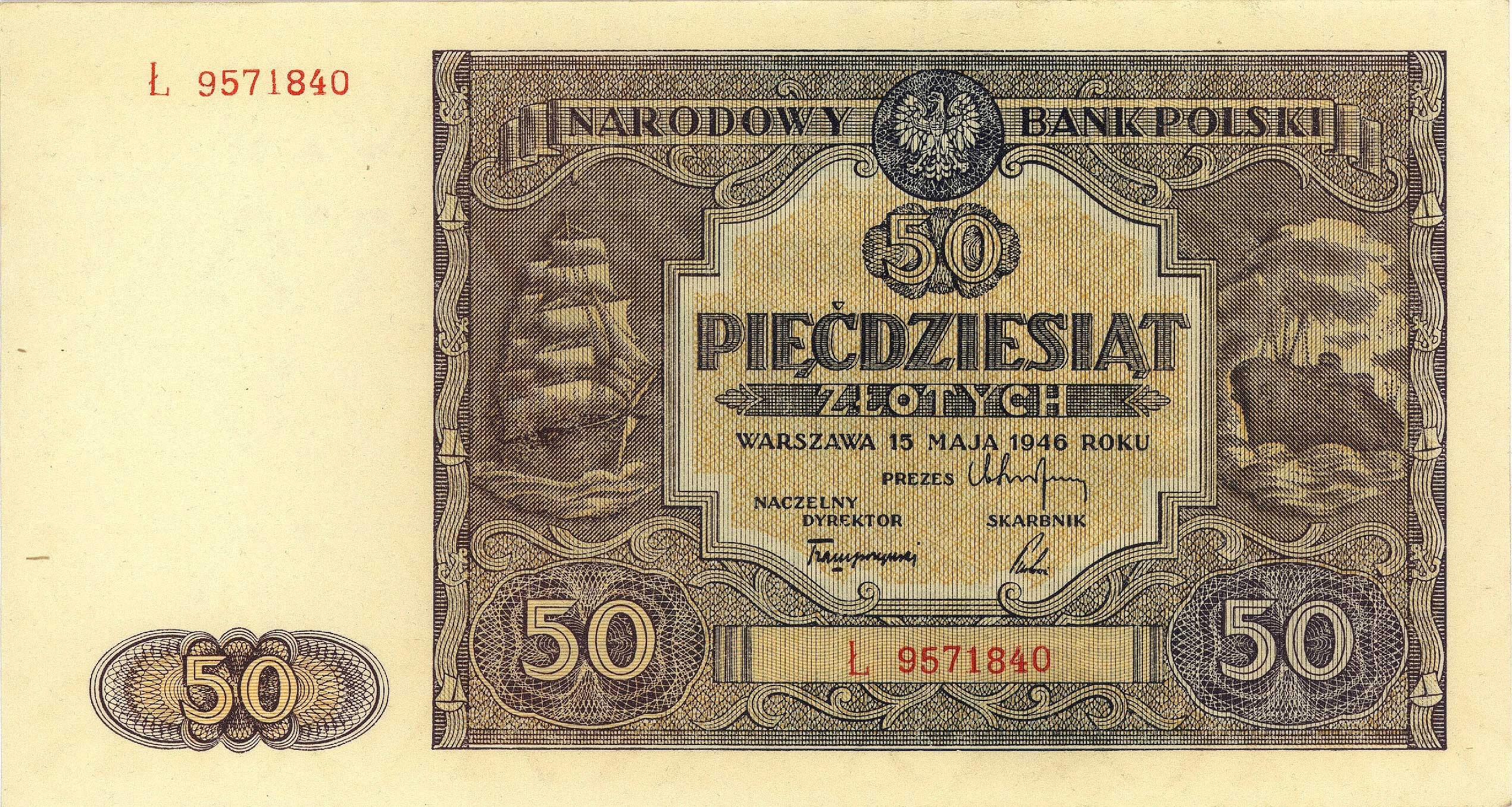 Banknoty powojenne 1944-1989, 50 złotych 15.05.1946, seria Ł, Miłczak 128b