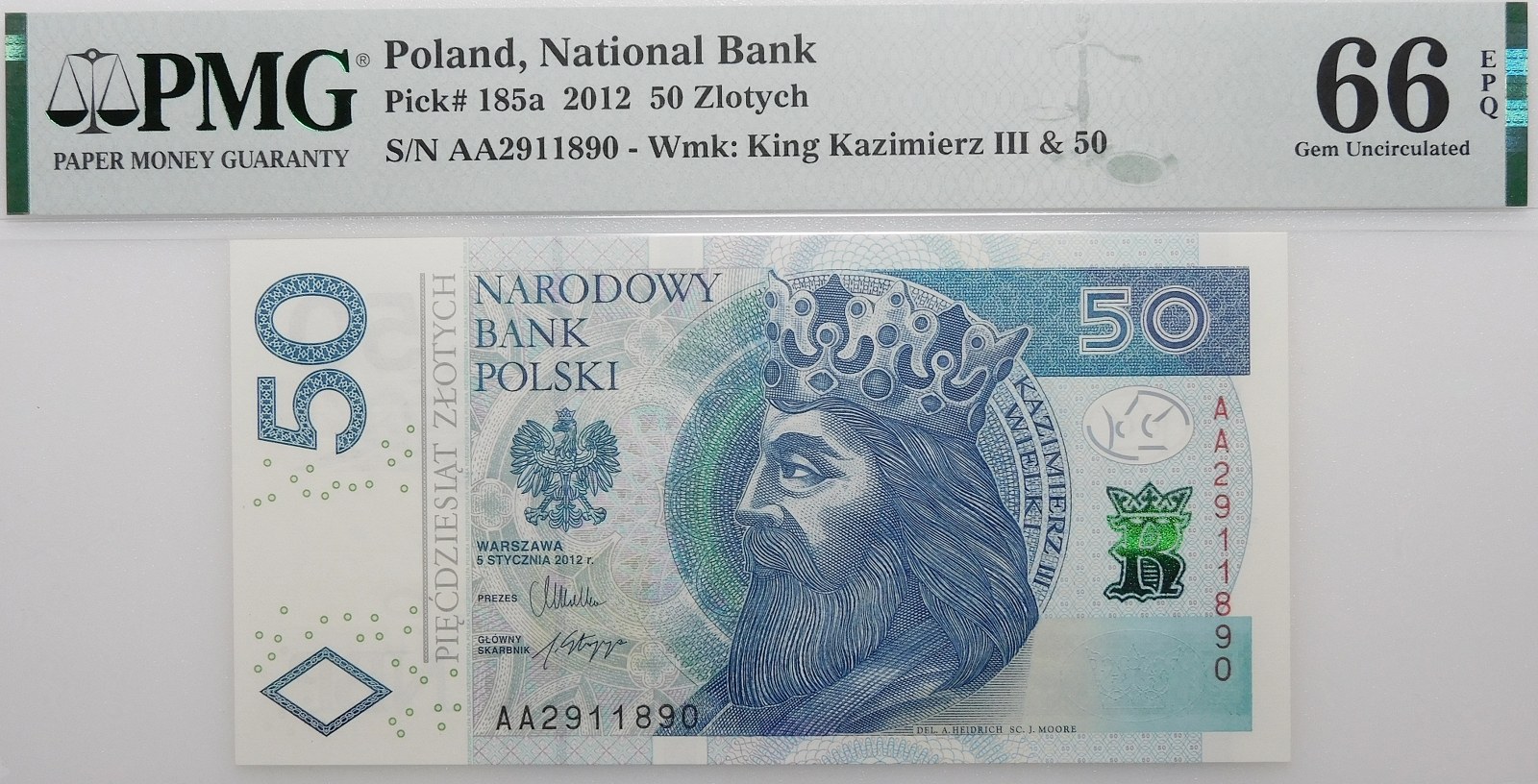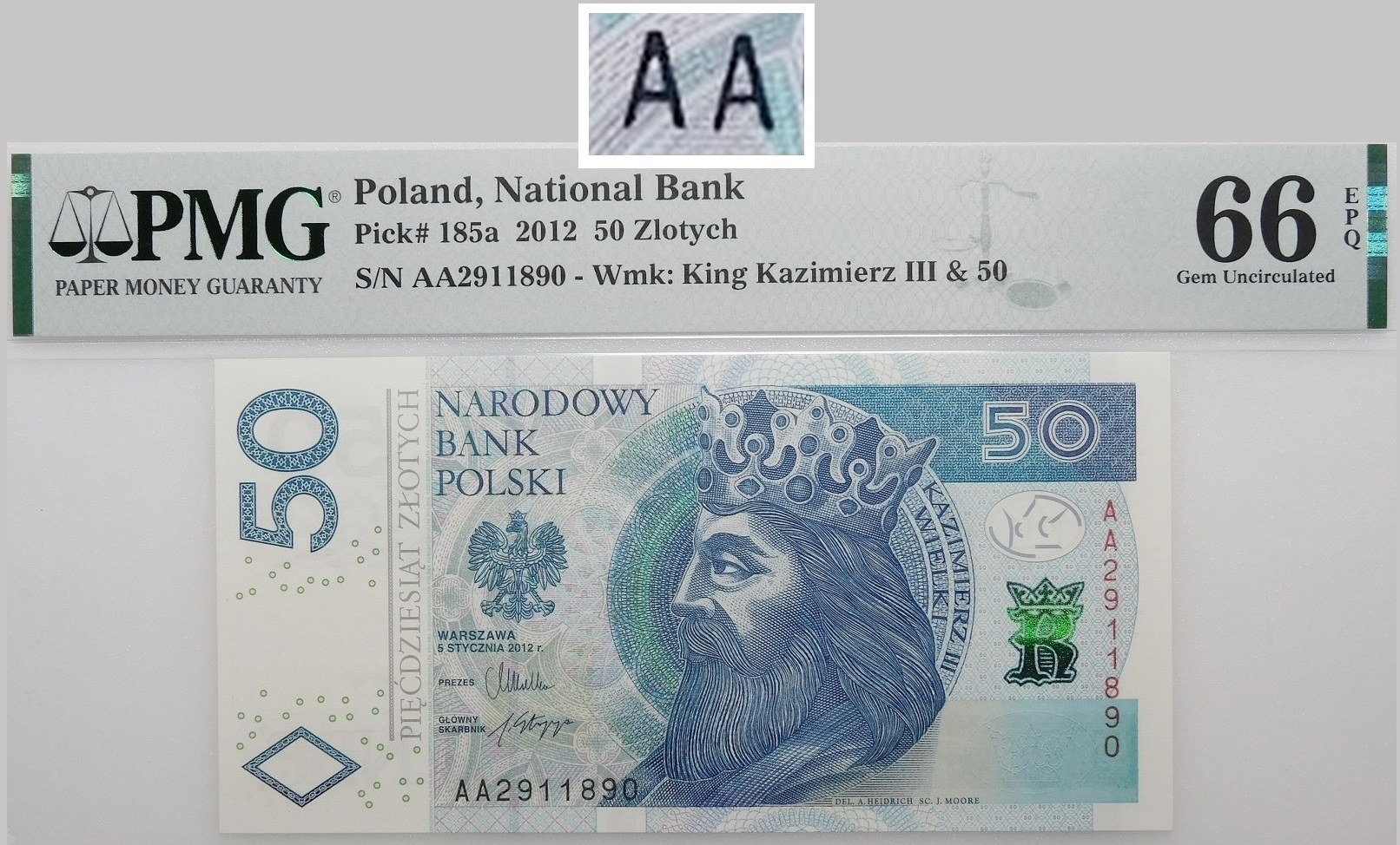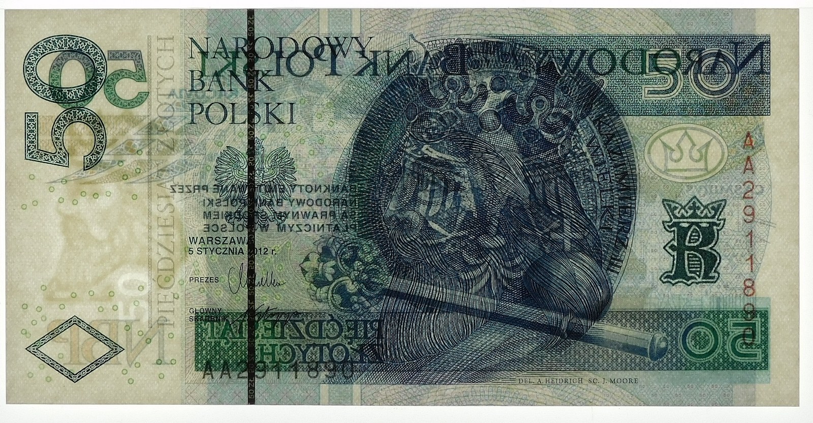 Banknot 50 złotych 2012, ser. AA - pierwsza seria