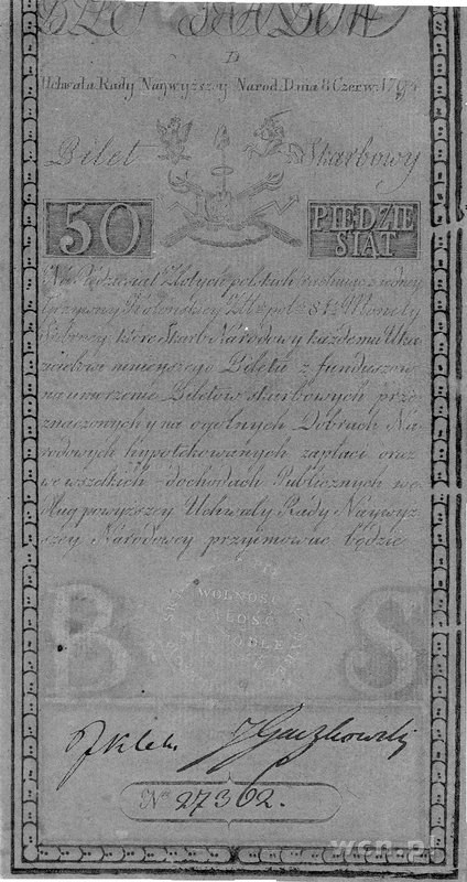 Insurekcja Kościuszkowska, 50 złotych 8.06.1794, seria D, Pick A4