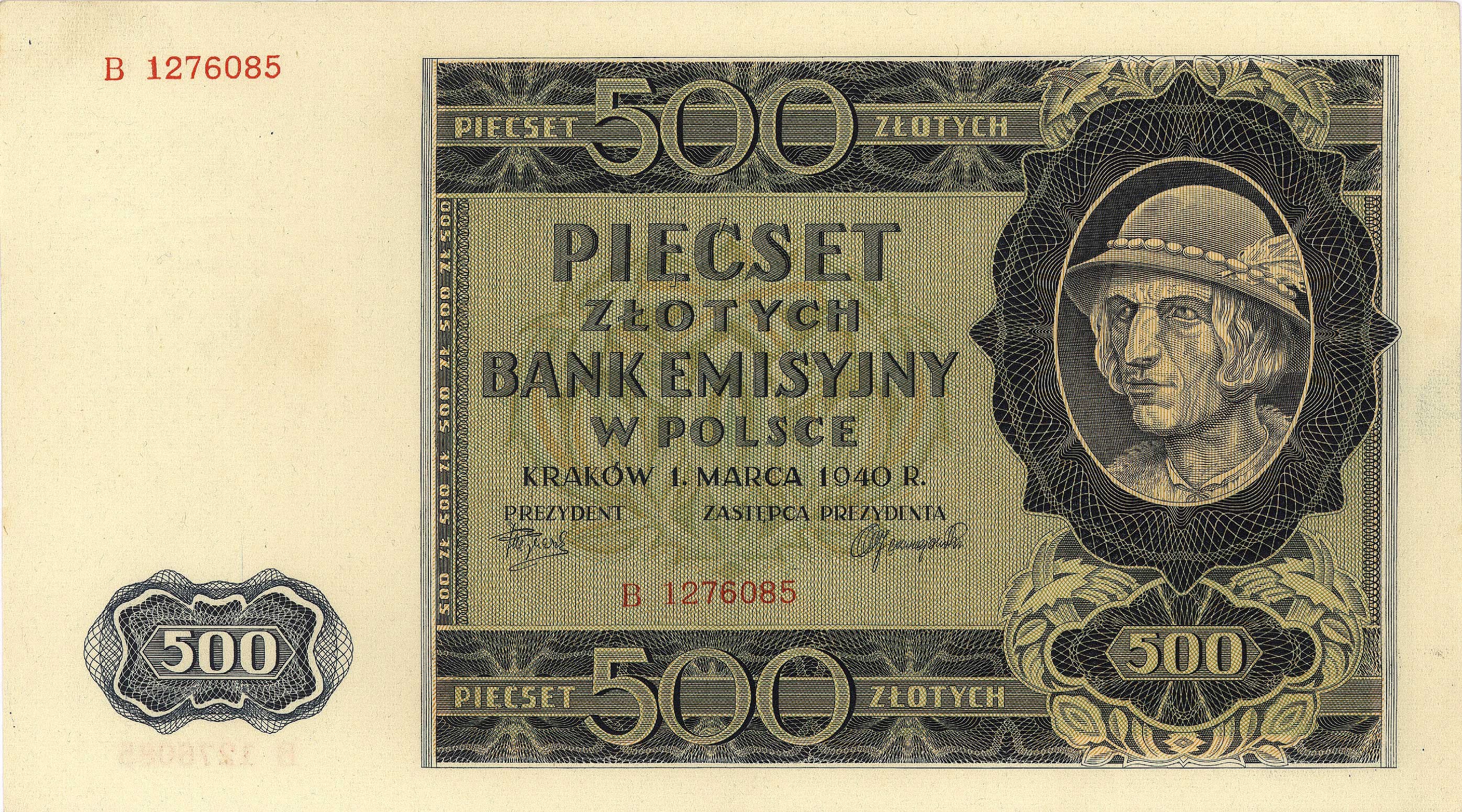 Generalna Gubernia 1940-1945, 500 złotych 1.03.1940 seria B, Miłczak 98a