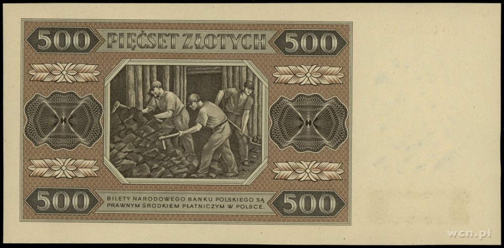 Polska powojenna 1944-1952, 500 złotych 1.07.1948, seria AD, numeracja 0298786; Lucow 1308 (R2), Miłczak 140bb; wyśmienity stan zachowania