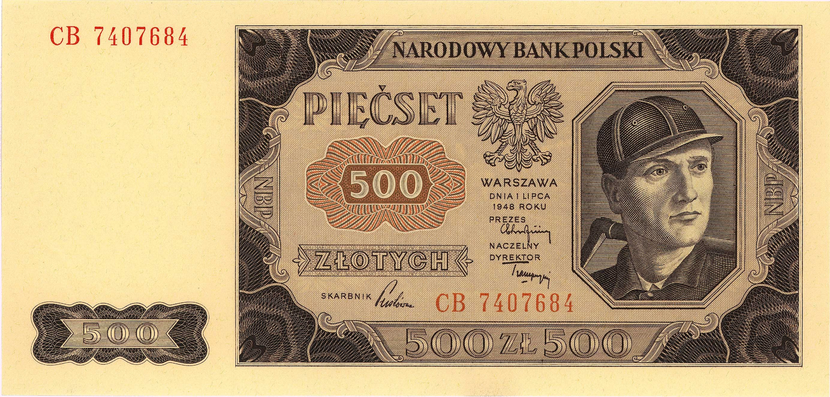 Banknoty powojenne 1944-1989, 500 złotych 1.07.1948, seria CB, Miłczak 140d