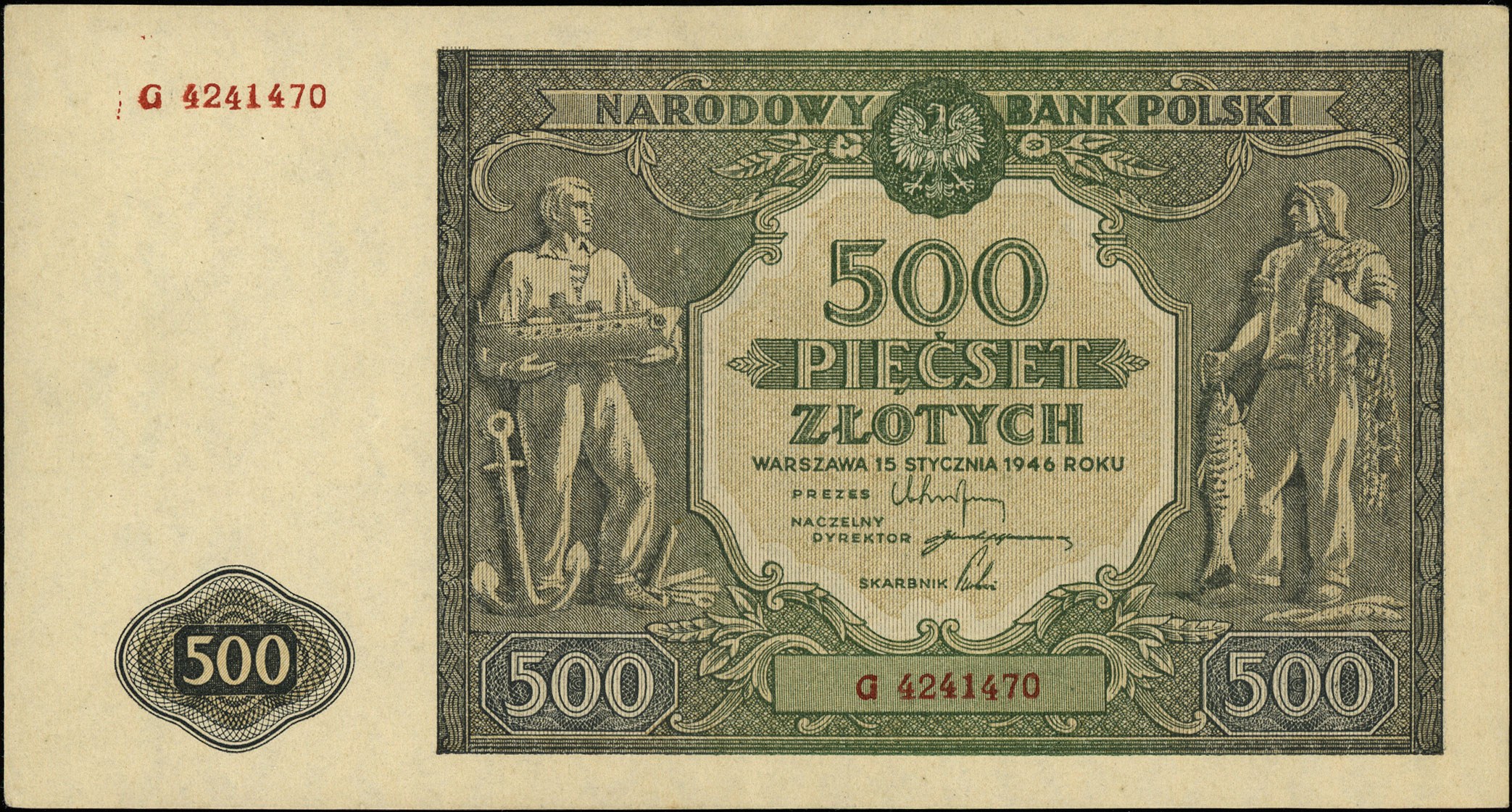 Polska powojenna 1944-1952, 500 złotych 15.01.1946, seria G, Miłczak 121a, Lucow 1159 (R4), piękne