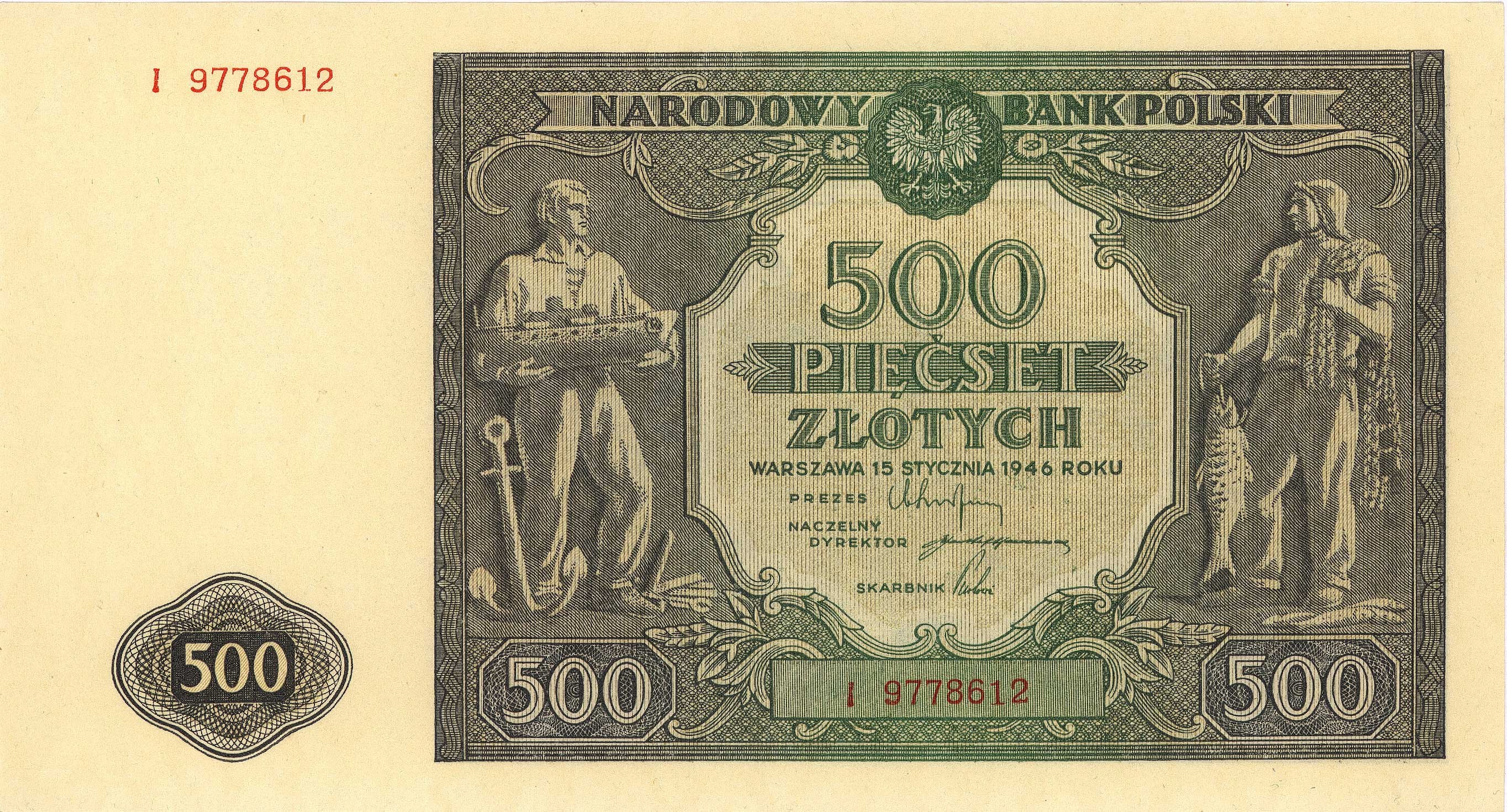 Banknoty powojenne 1944-1989, 500 złotych 15.01.1946, seria I, Miłczak 121a