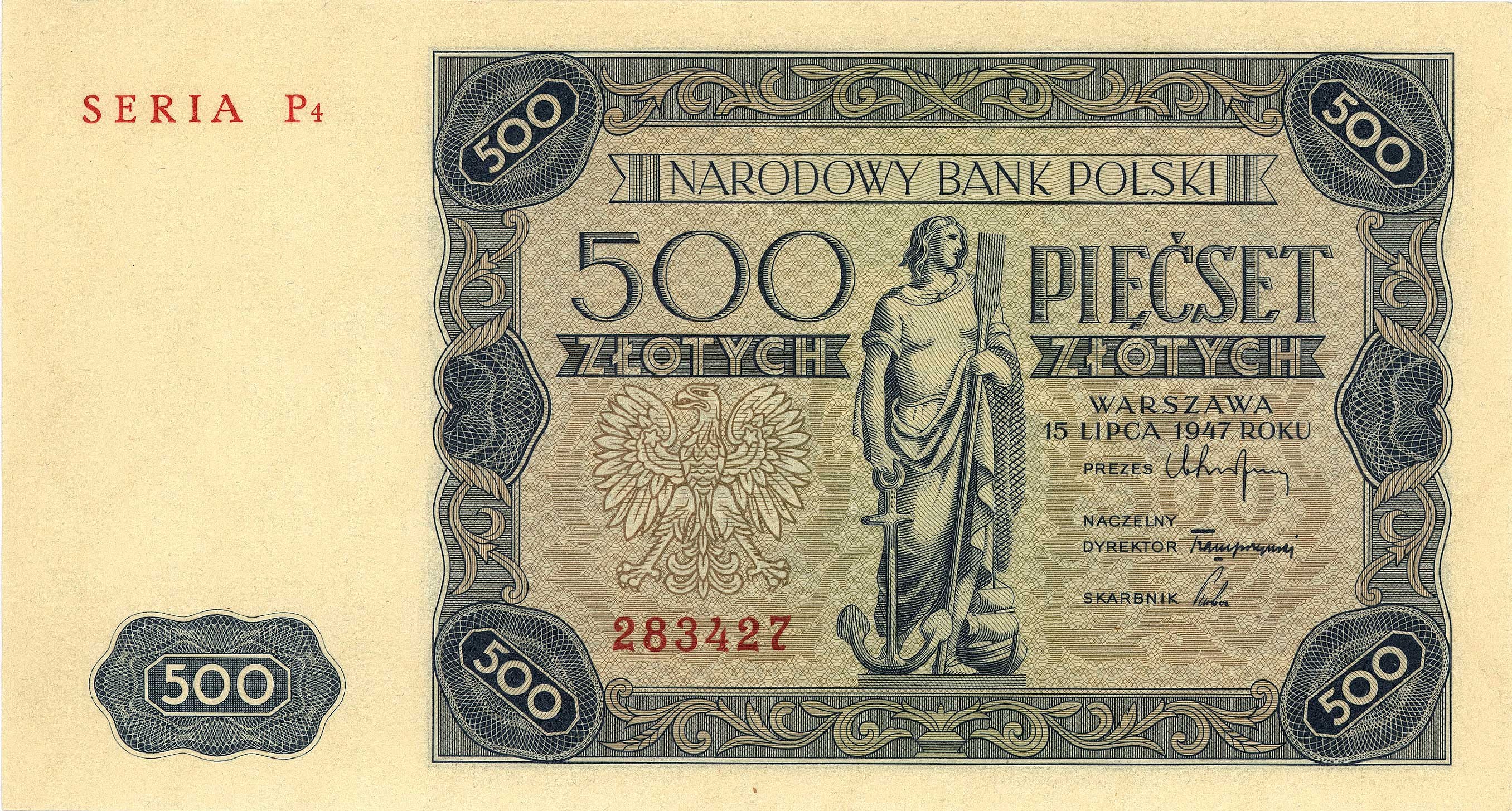 Banknoty powojenne 1944-1989, 500 złotych 15.07.1947, seria P 4, Miłczak 132d