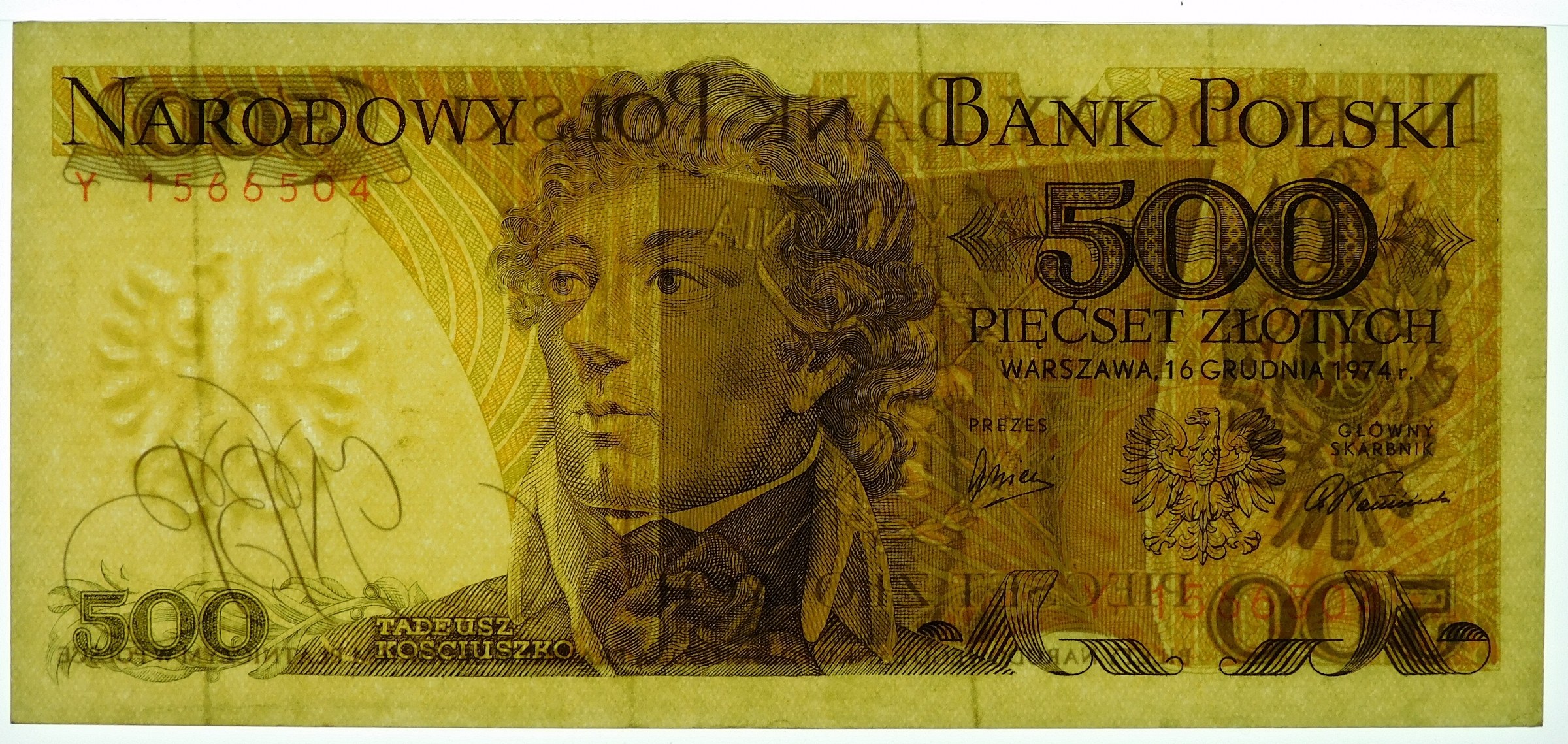 Banknot 500 złotych 1974, ser. Y - rzadsza seria.