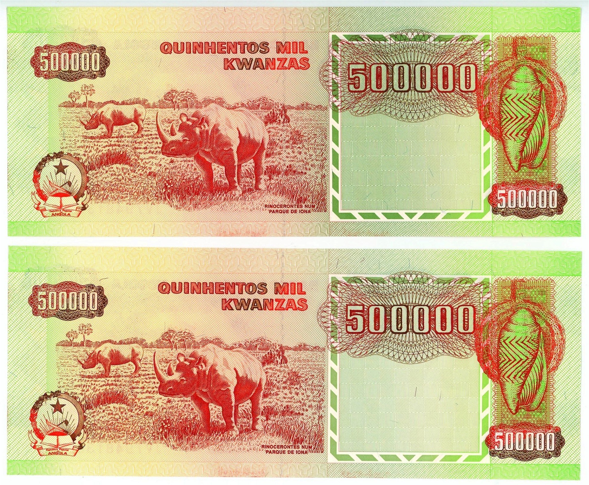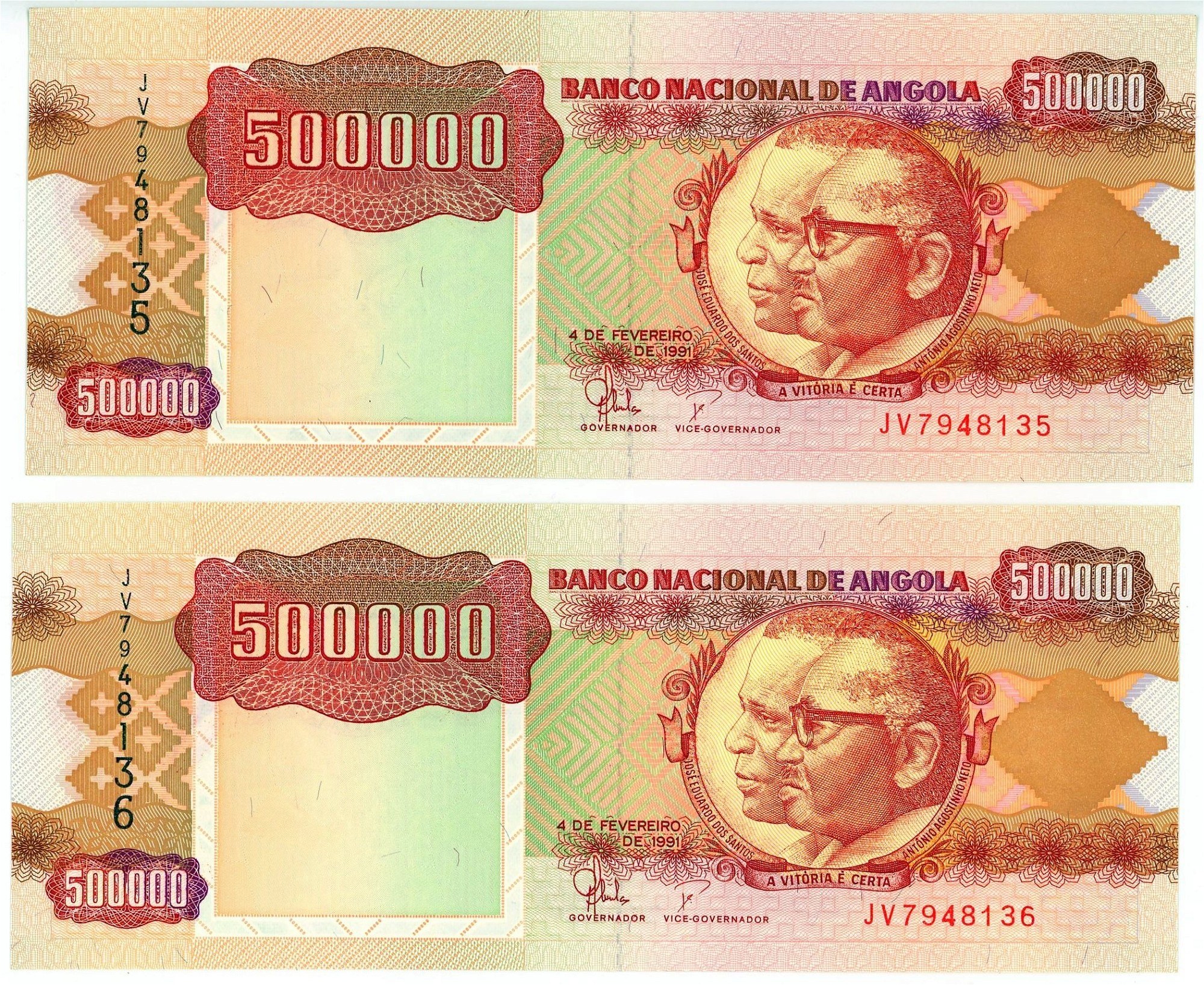 Angola 2 x 500000 Kwanzas 1991 (1994) With Consecutive Numbers