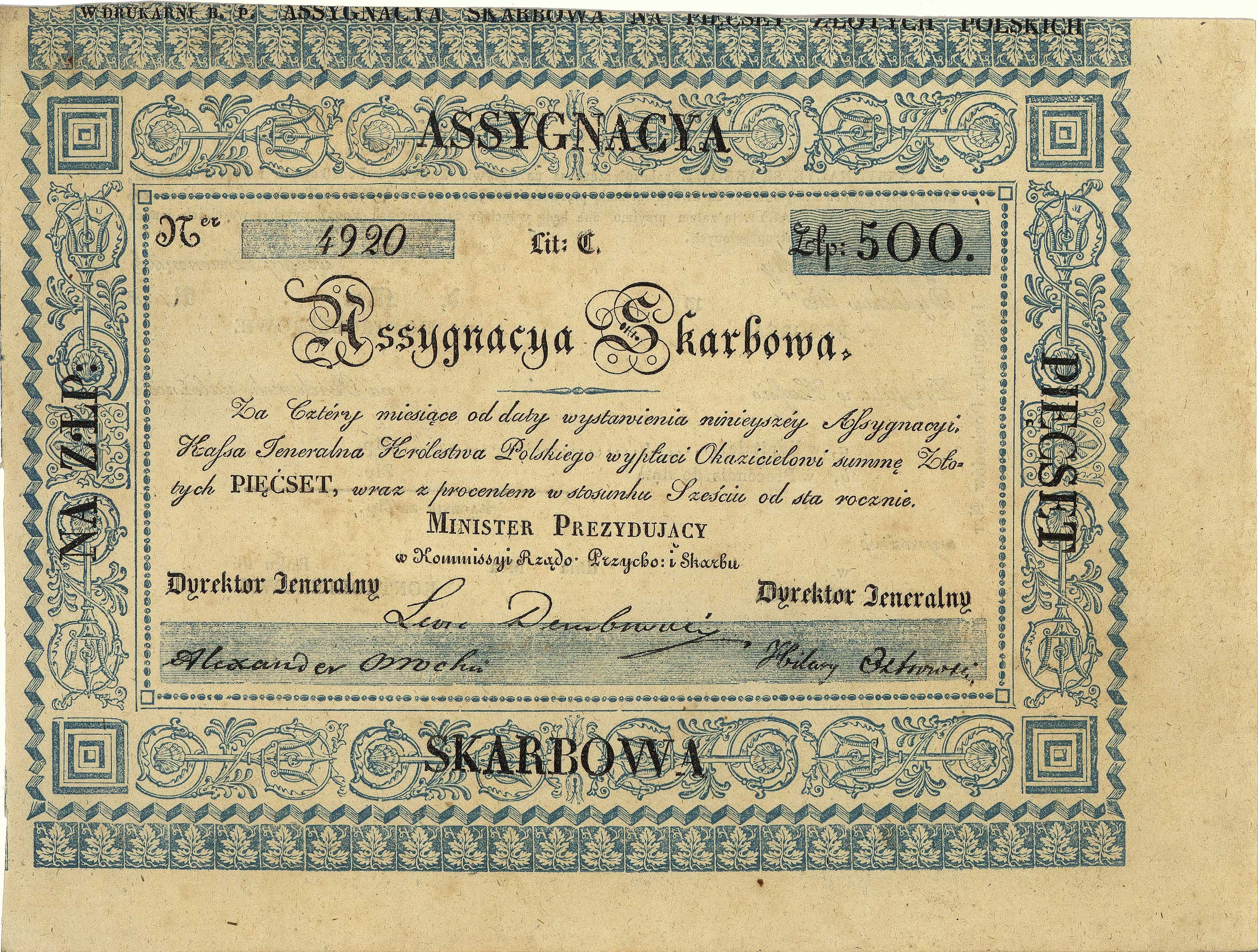 asygnata na 500 złotych 1831, Lucow 197 (R4), Pick A 18...
