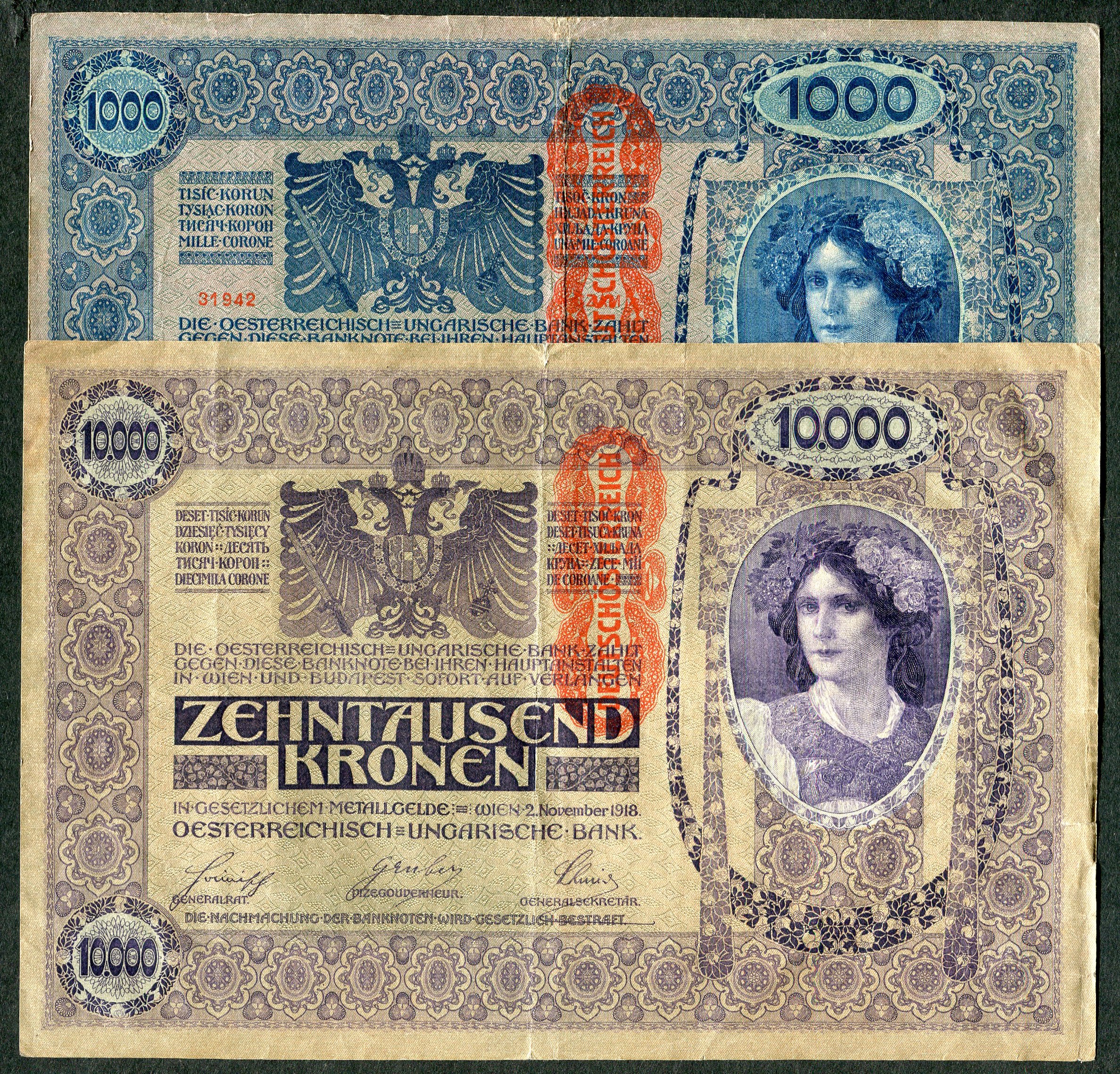 Austria, 1.000, 10.000 koron 1918 (2szt.)