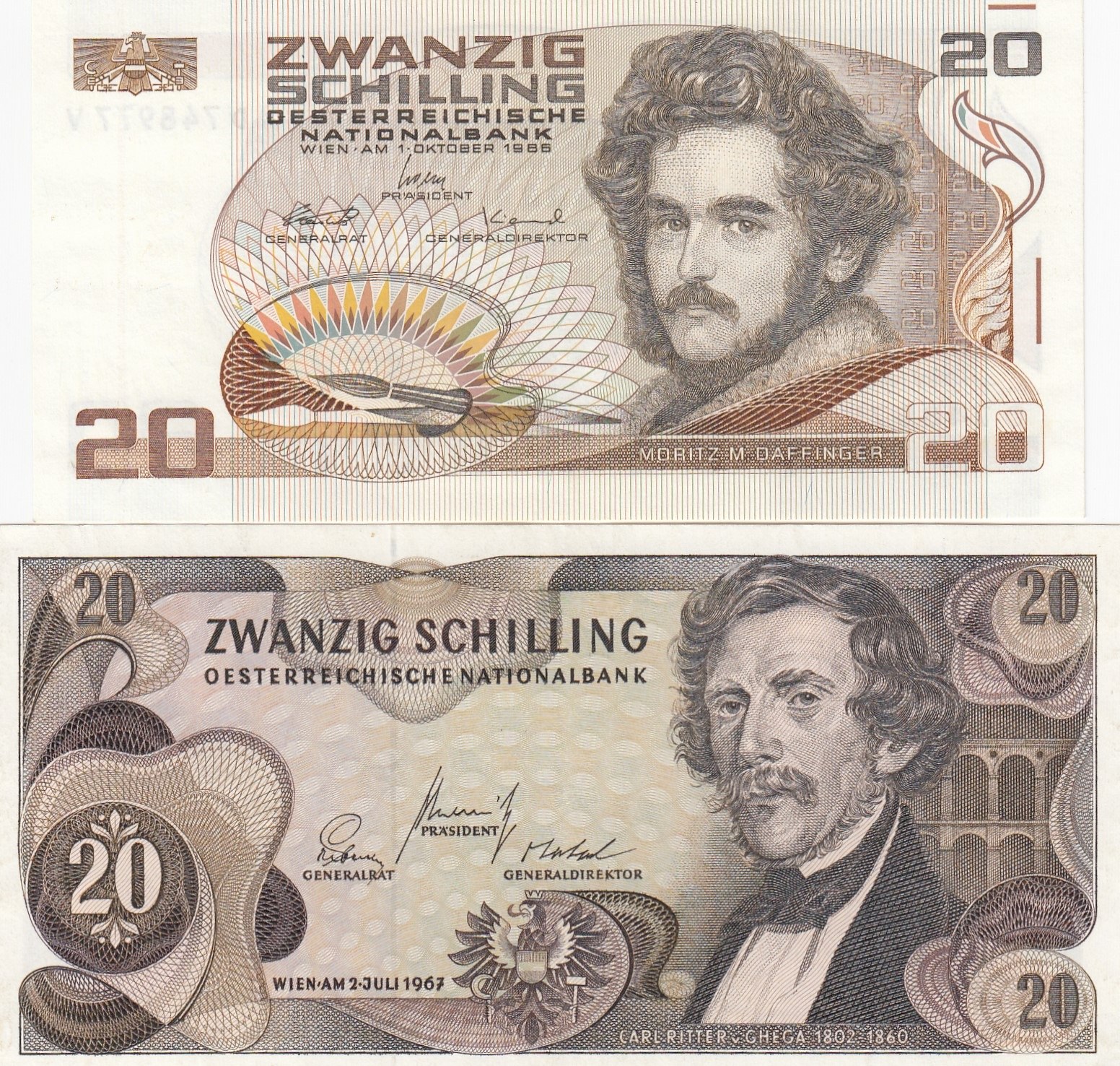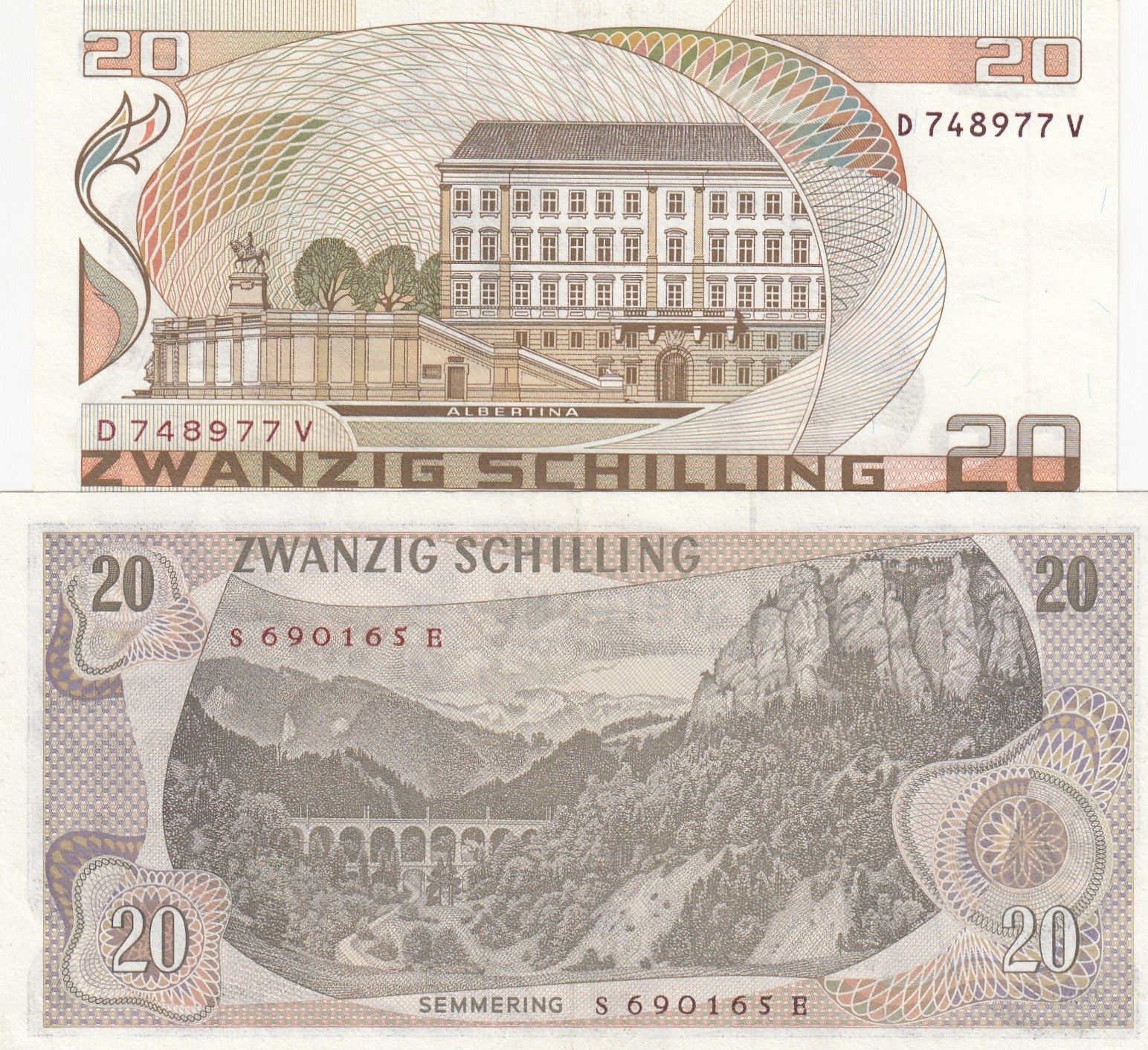 Austria, 20 Shillings (2), 1967/1986, AUNC, p142, p148, (Total 2 banknotes)