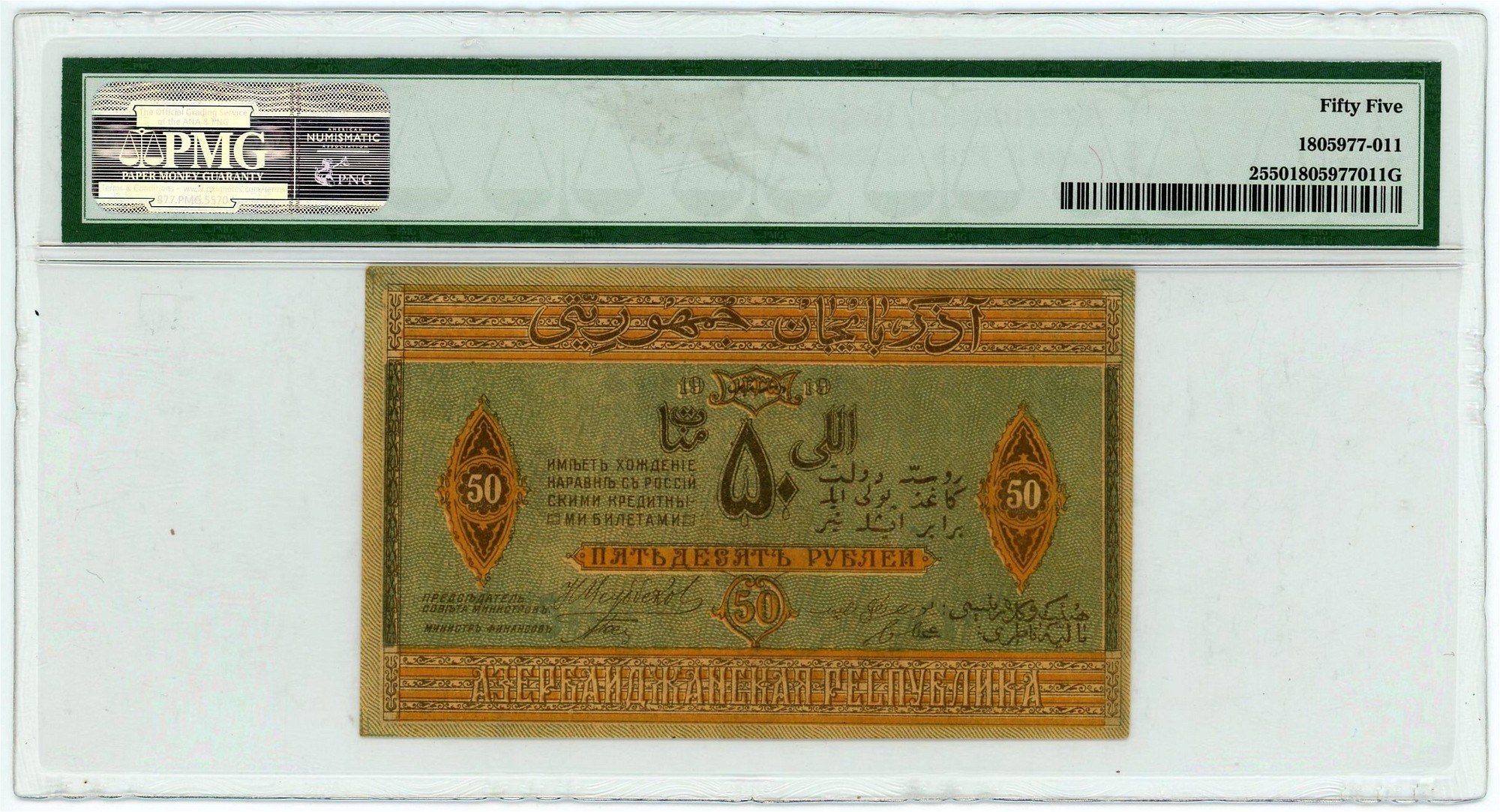 Azerbaijan 50 Roubles 1919 PMG 55 About UNC