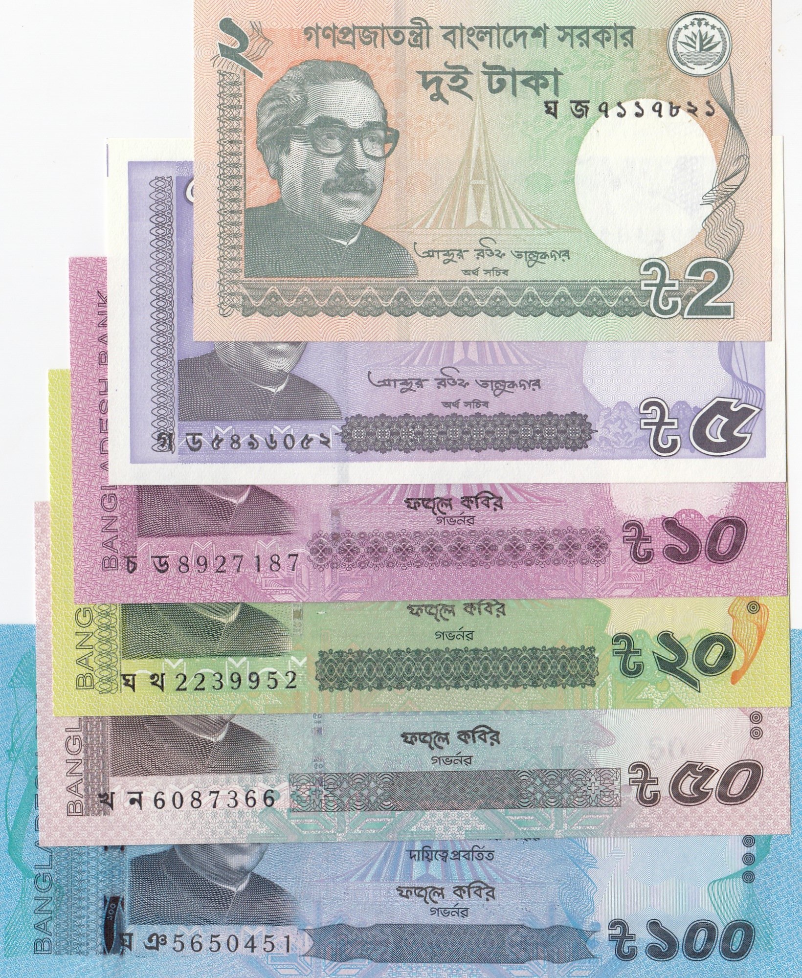 Bangladesh, 2 Taka, 5 Taka, 10 Taka, 20 Taka, 50 Taka and 100 Taka, 2017/2018, UNC, pNew, (Total 6 banknotes)