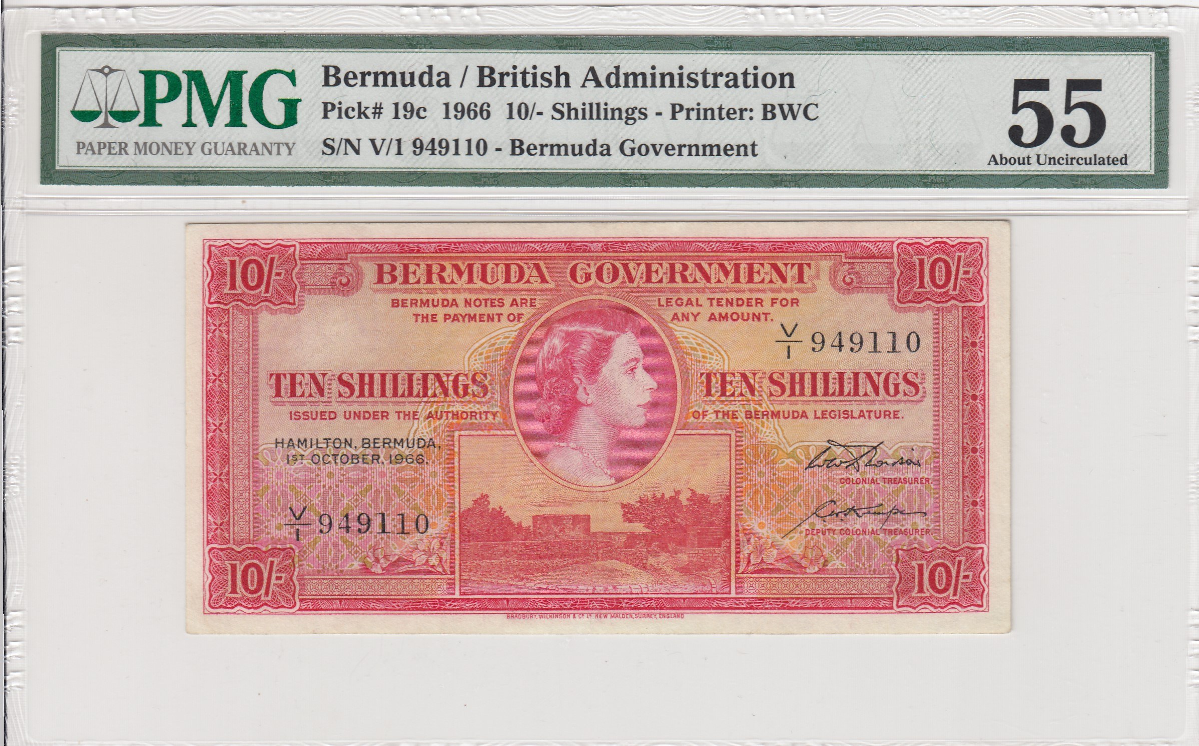 Bermuda, 10 Shillings, 1966, AUNC, p19c