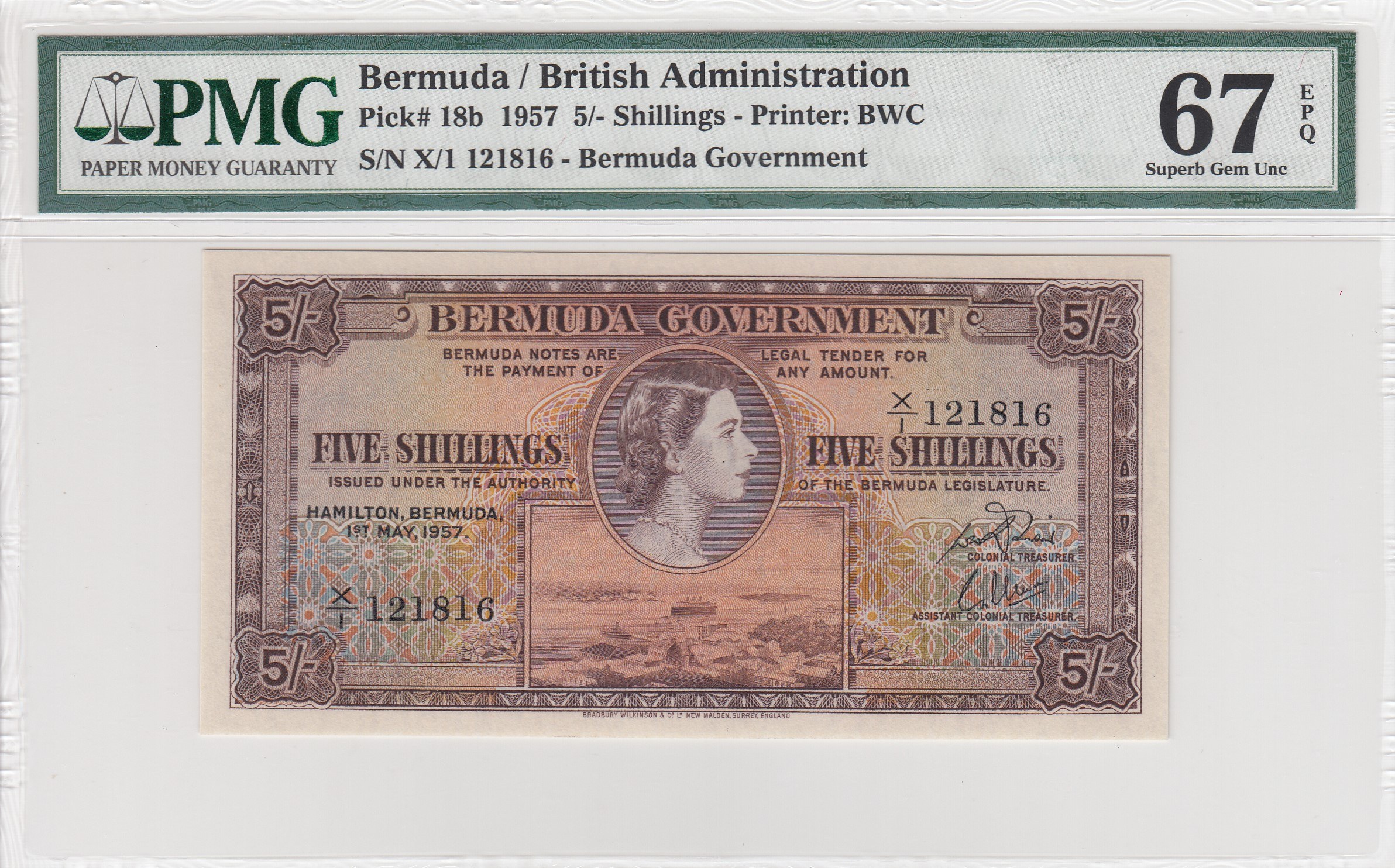 Bermuda, 5 shillings, 1957, UNC, p18b