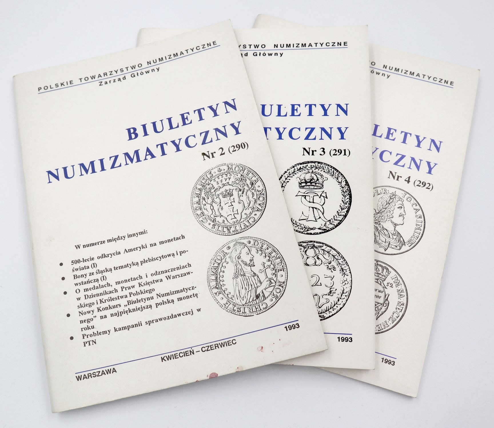 Tytuł: Biuletyn Numizmatyczny (3 egzemplarze): nr 2/1993, nr 3/1993, nr 4/1993