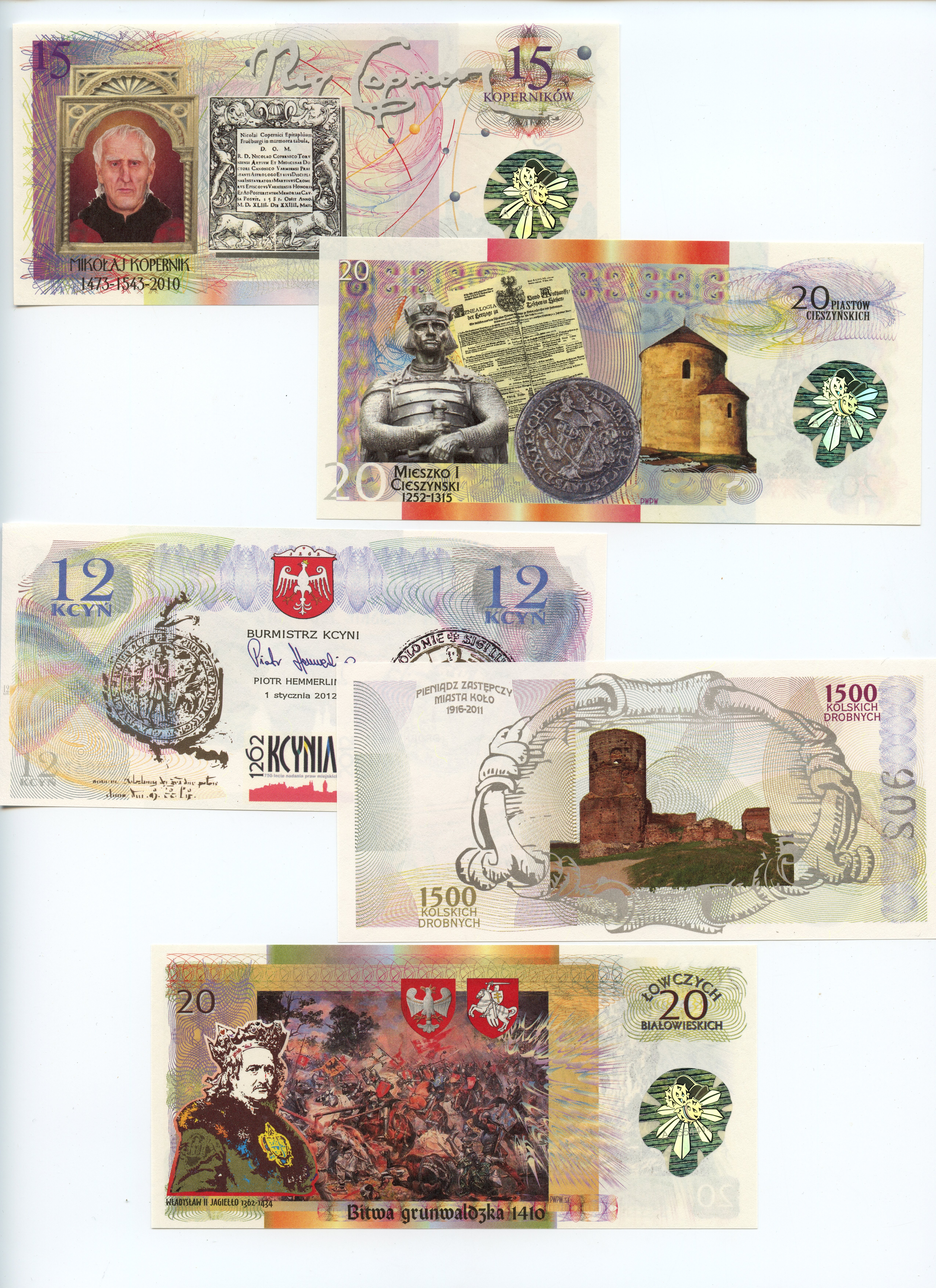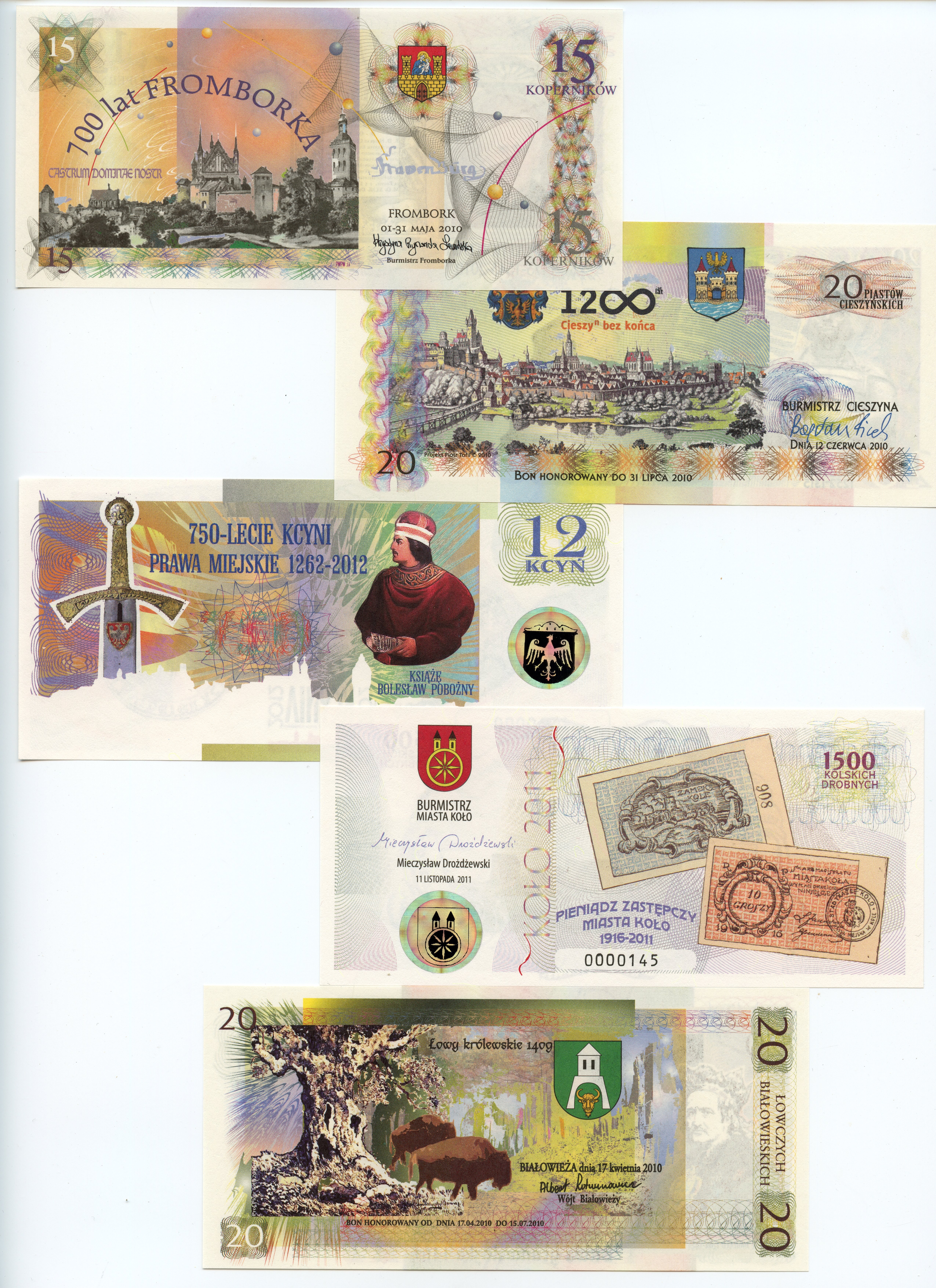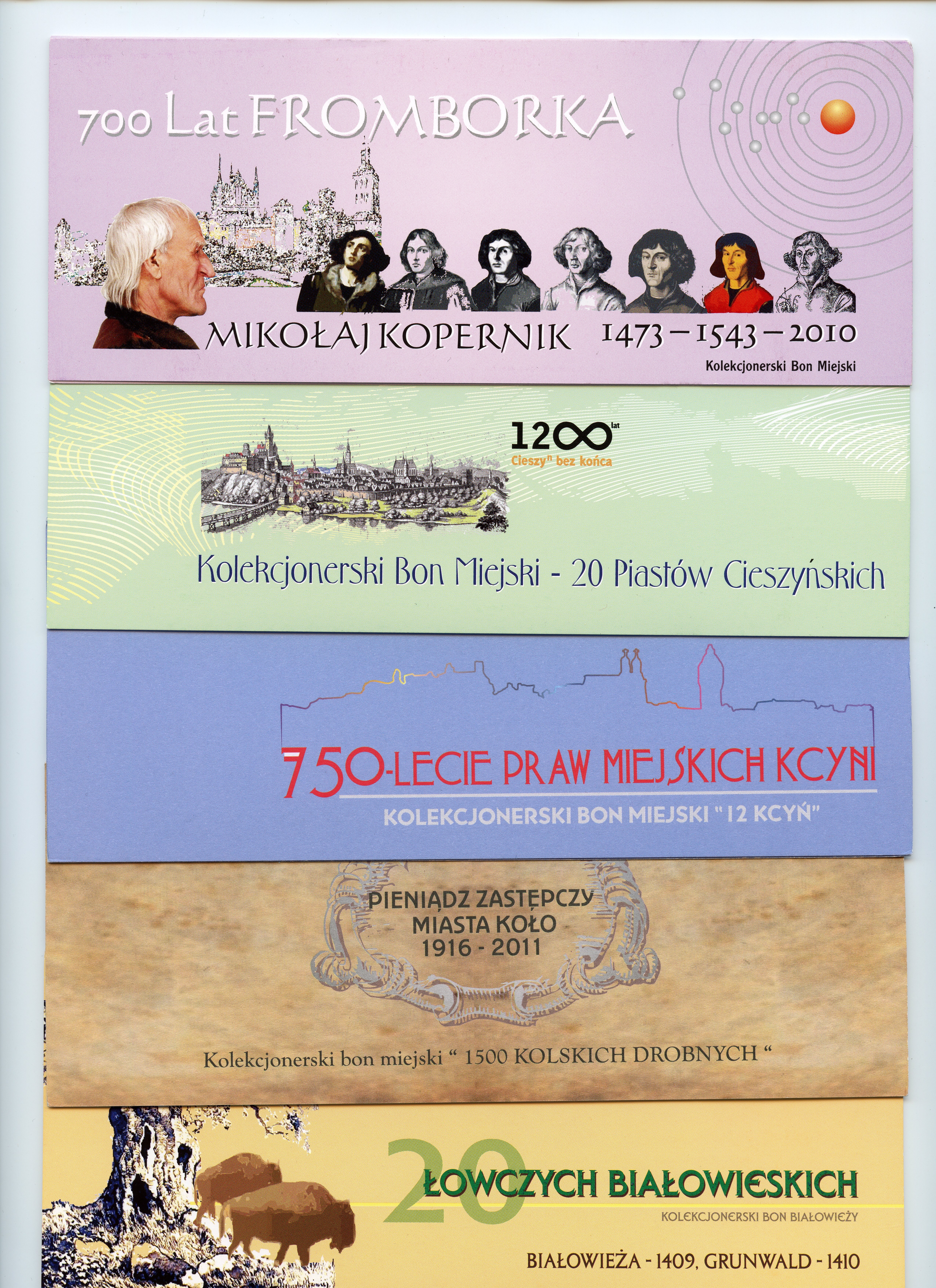 Zestaw bonów miejsckich 5 sztuk, w dedykowanych etui.