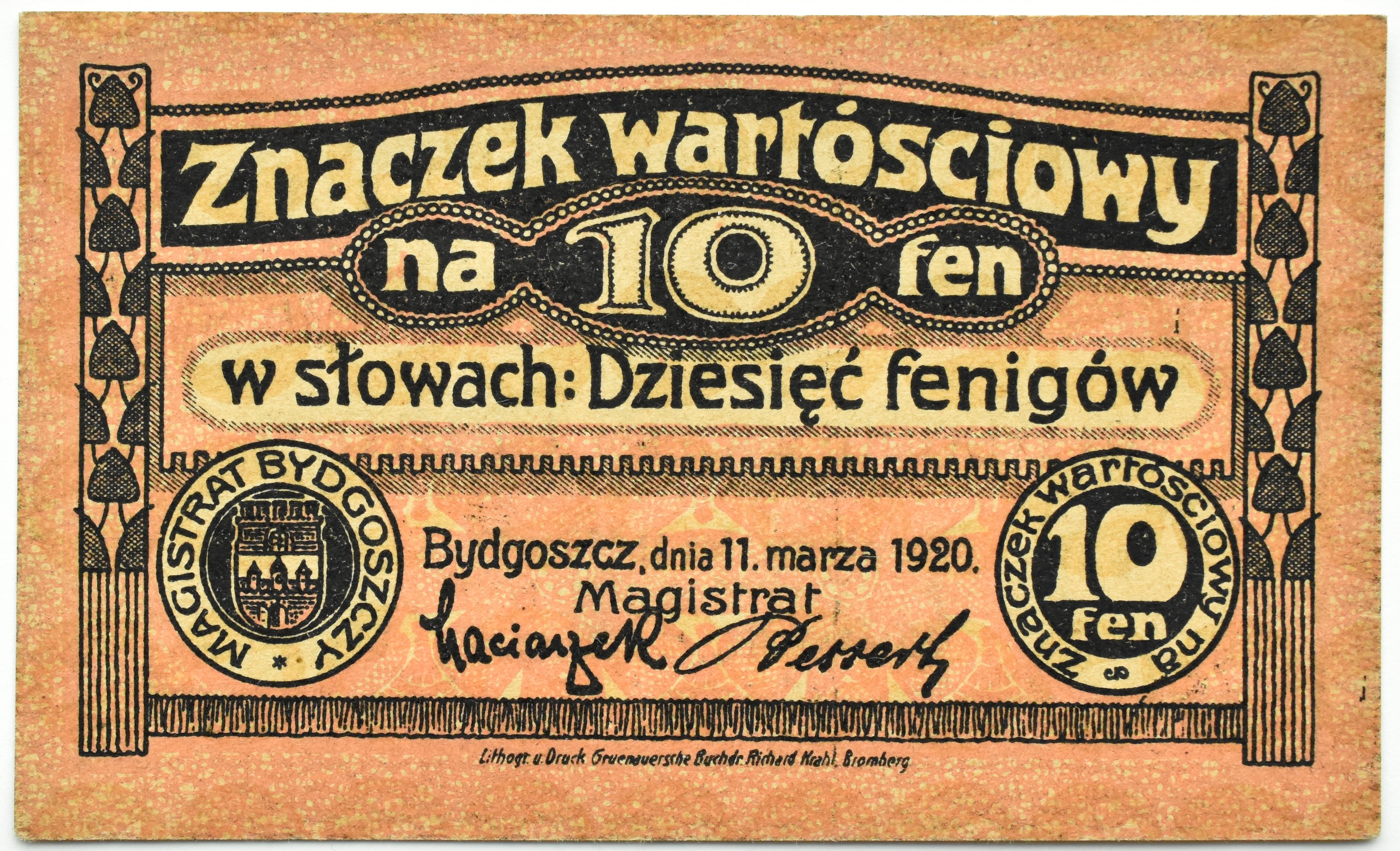 Bromberg/Bydgoszcz, znaczek wartościowy 10 fenigów 1920, UNC