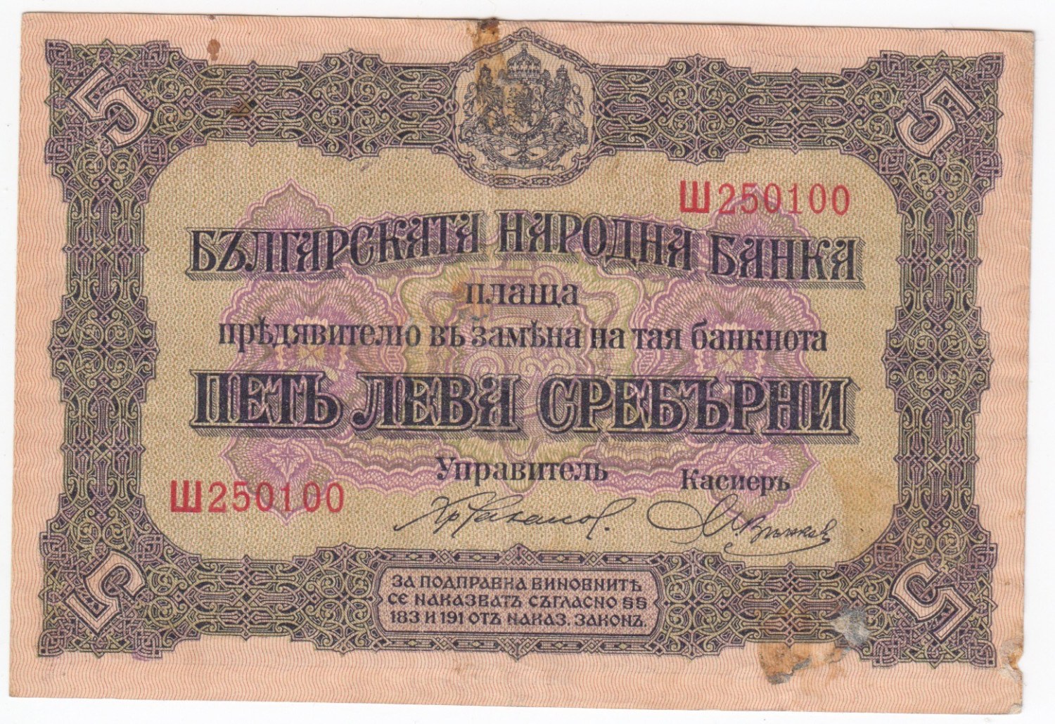 Bulgaria 5 Leva ND (1917)