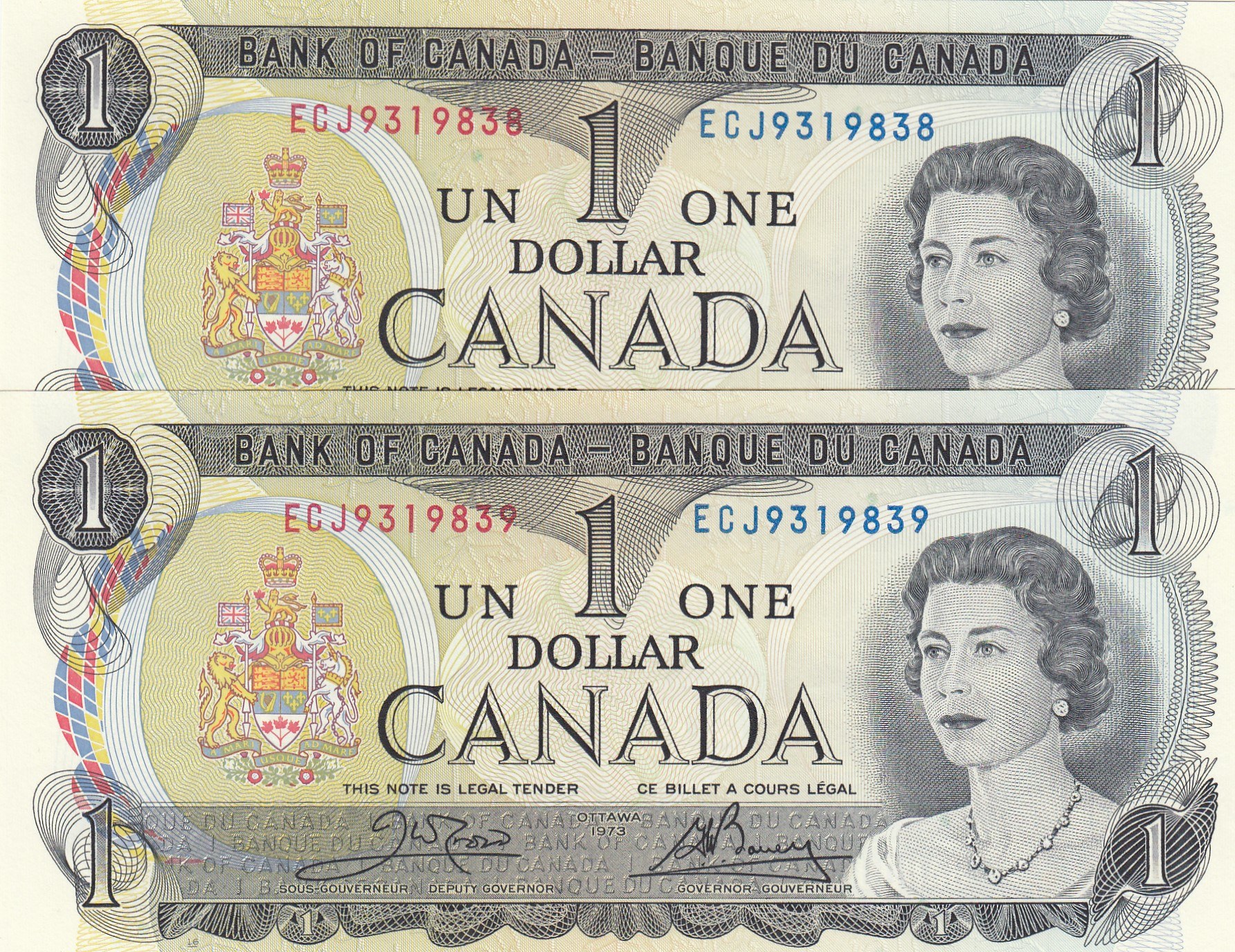 Canada, 1 Dollar, 1973, UNC, p85c, (Total 2 consecutive banknotes)