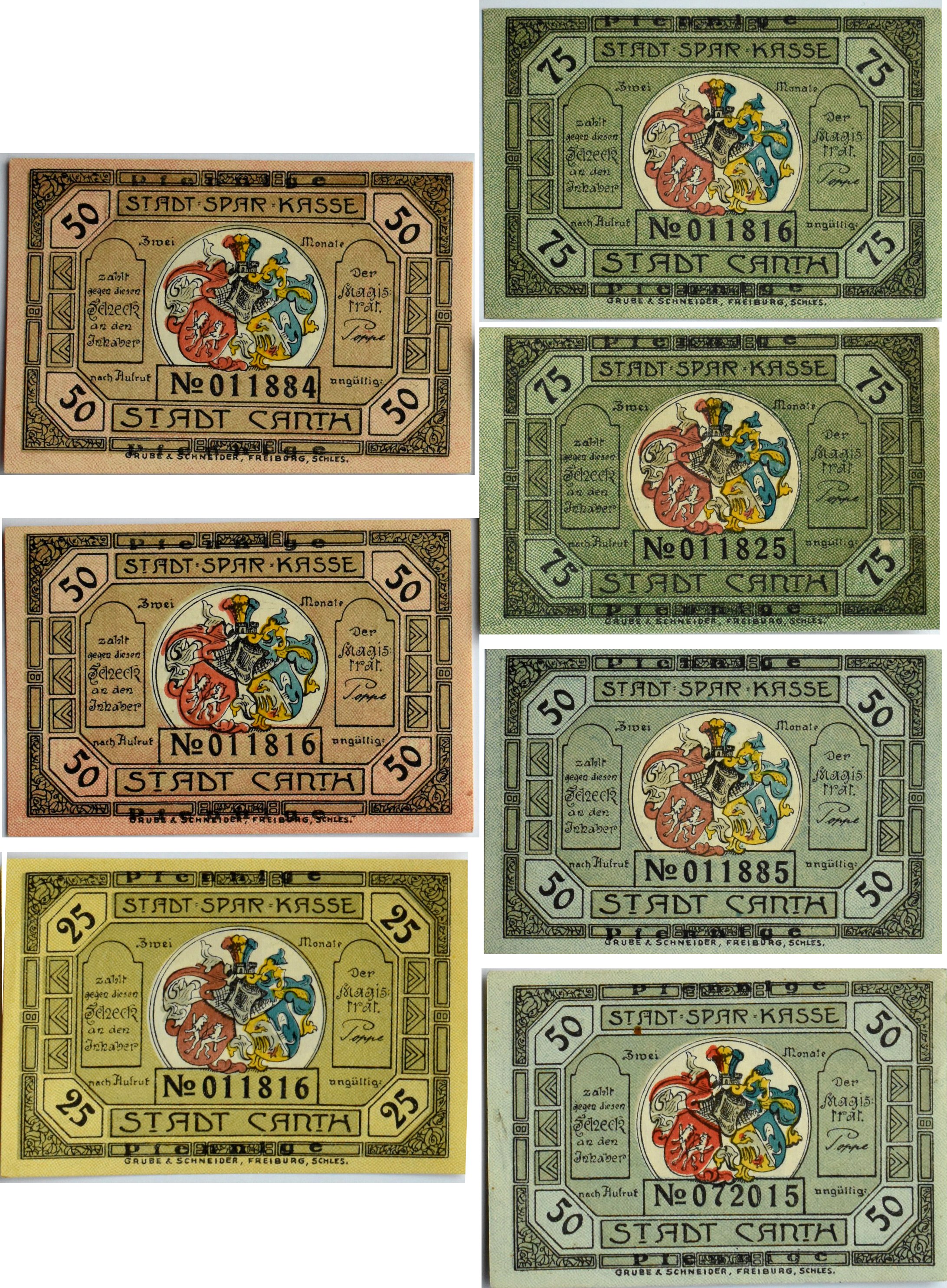 Canth, Kąty Wrocławskie, lot 7 notgeldów