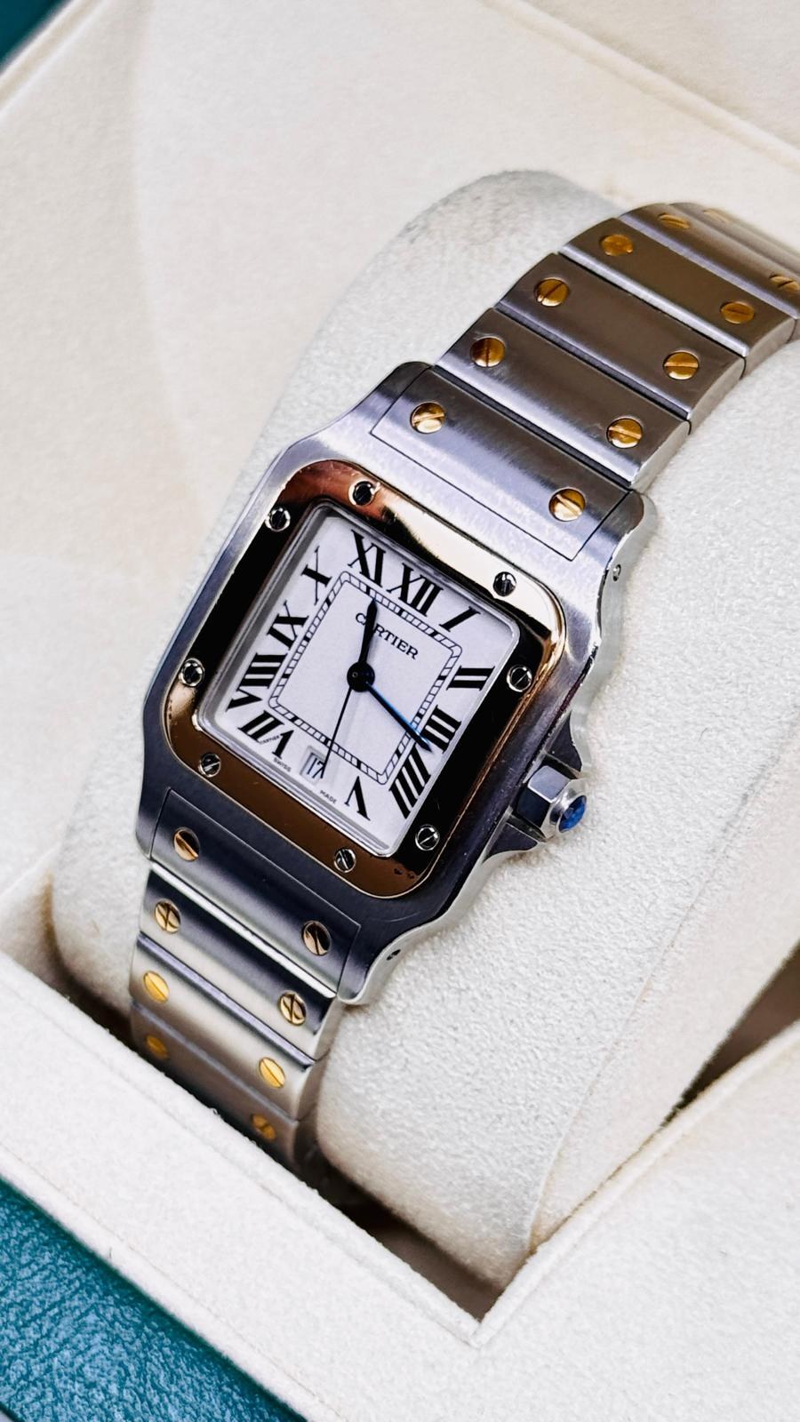 BRAND CARTIER MODEL (WATCH) SANTOS GALBÉE REFERENCE NUMBER 1566 MOVEMENT QUARTZ CASE MATERIAL GOLD/STEEL STRAP MATERIAL GOLD/STEEL ORIGINAL BOX, NO CARTIER PAPERS, ONE YEAR SHOP WARRANTY CASE CASE MATERIAL GOLD/STEEL DIAMETER 29 X 41 MM GLASS SAPPHIRE CRYSTAL STRAP STRAP MATERIAL GOLD/STEEL STRAP COLOR SILVER - AUCTION COMMISSION 25%