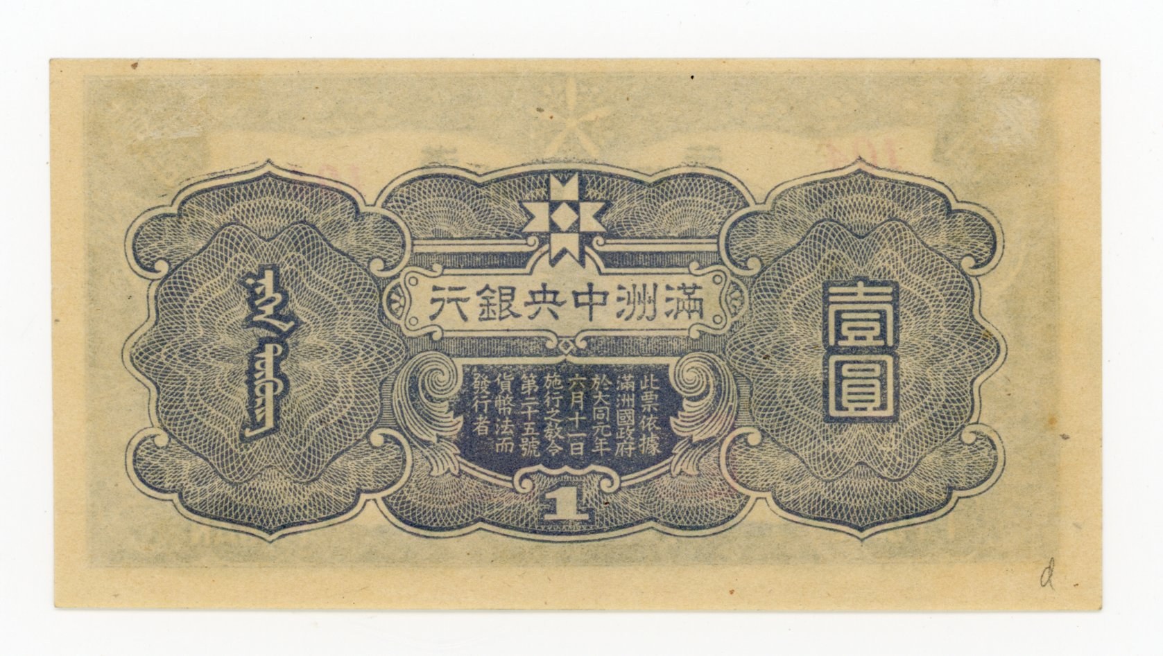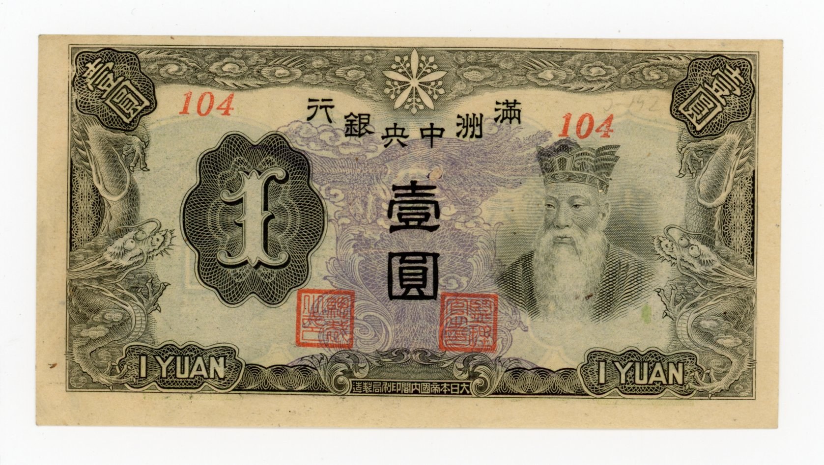 Chiny, 1 juan (1944). Stan zachowania: 1. Ślady po dwóch podlepkach filatelistycznych na rewersie. Literatura: Pick J135b
