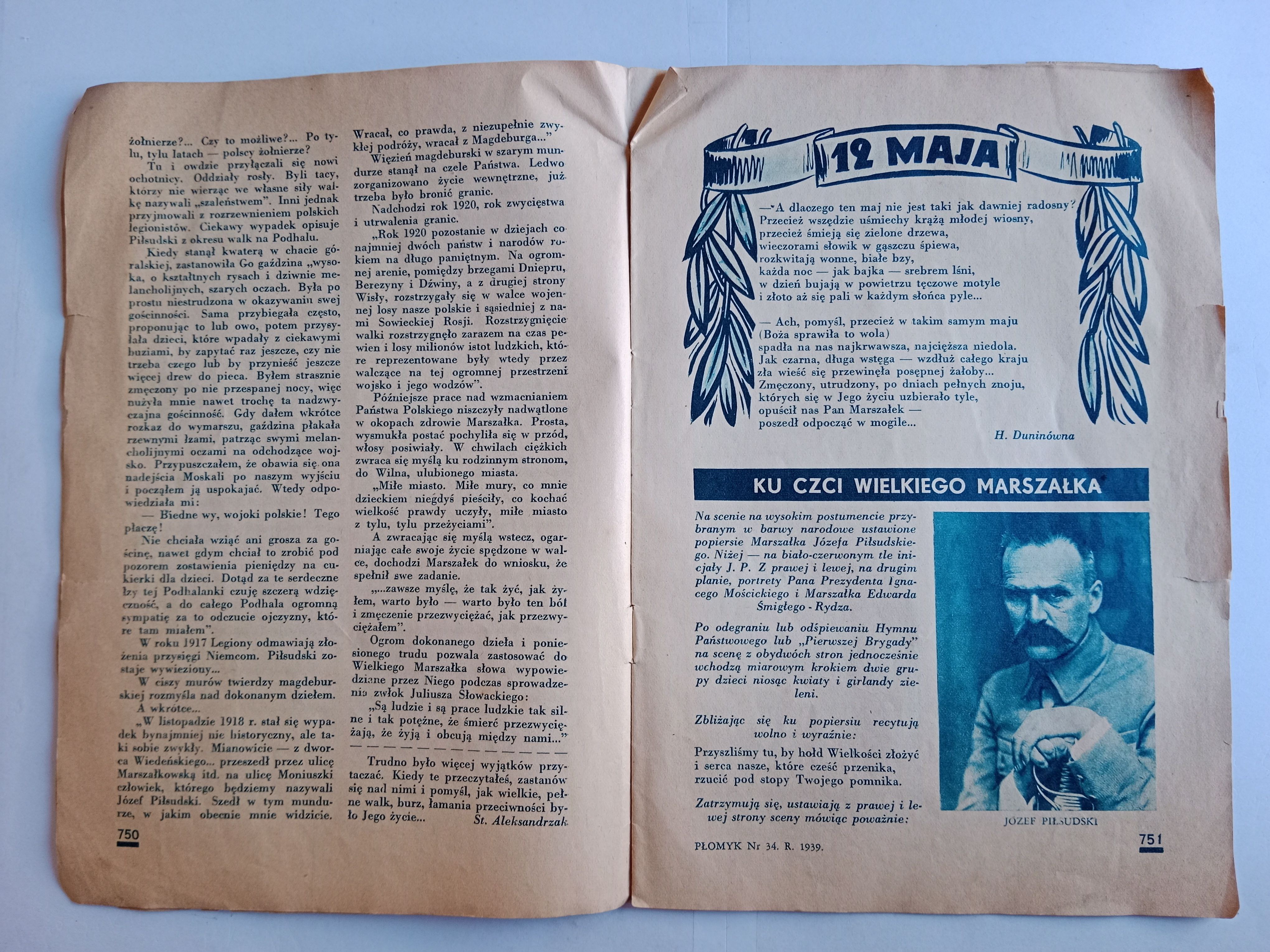 CZASOPISMO PŁOMYK NUMER SPECJALNY JÓZEF PIŁSUDSKI 1939 R WARSZAWA