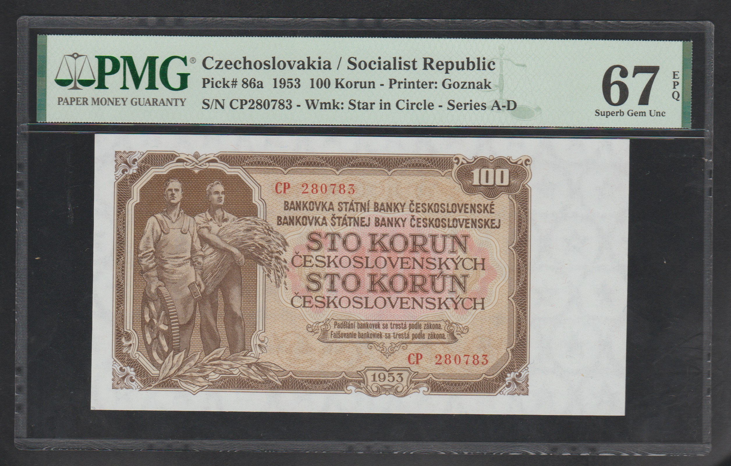 Czechoslovakia / Socialist Republic Pick# 86a 1953 100 Korun - Printer: Goznak