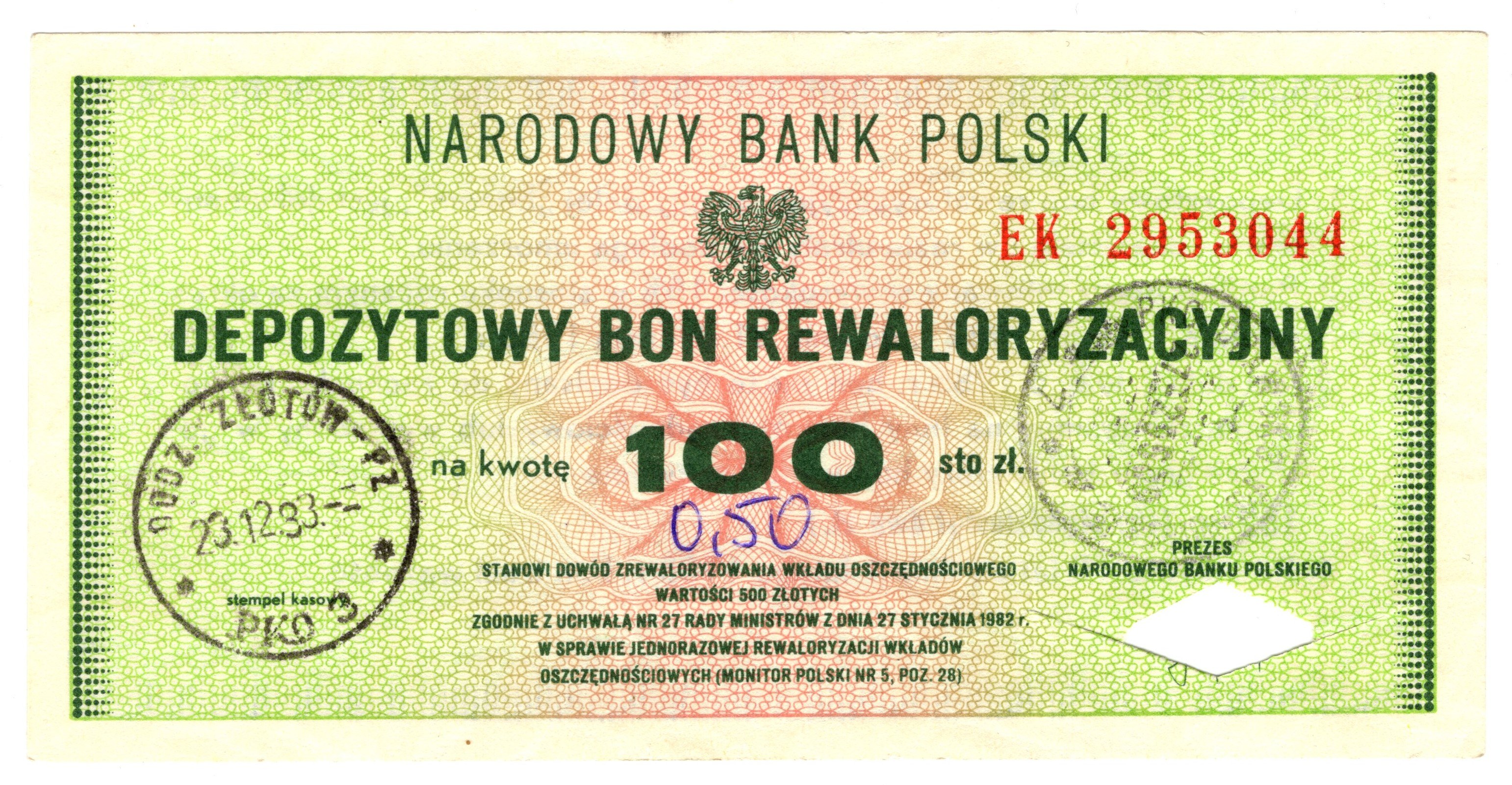 Depozytowy Bon Rewaloryzacyjny, 100 Złotych, seria EK