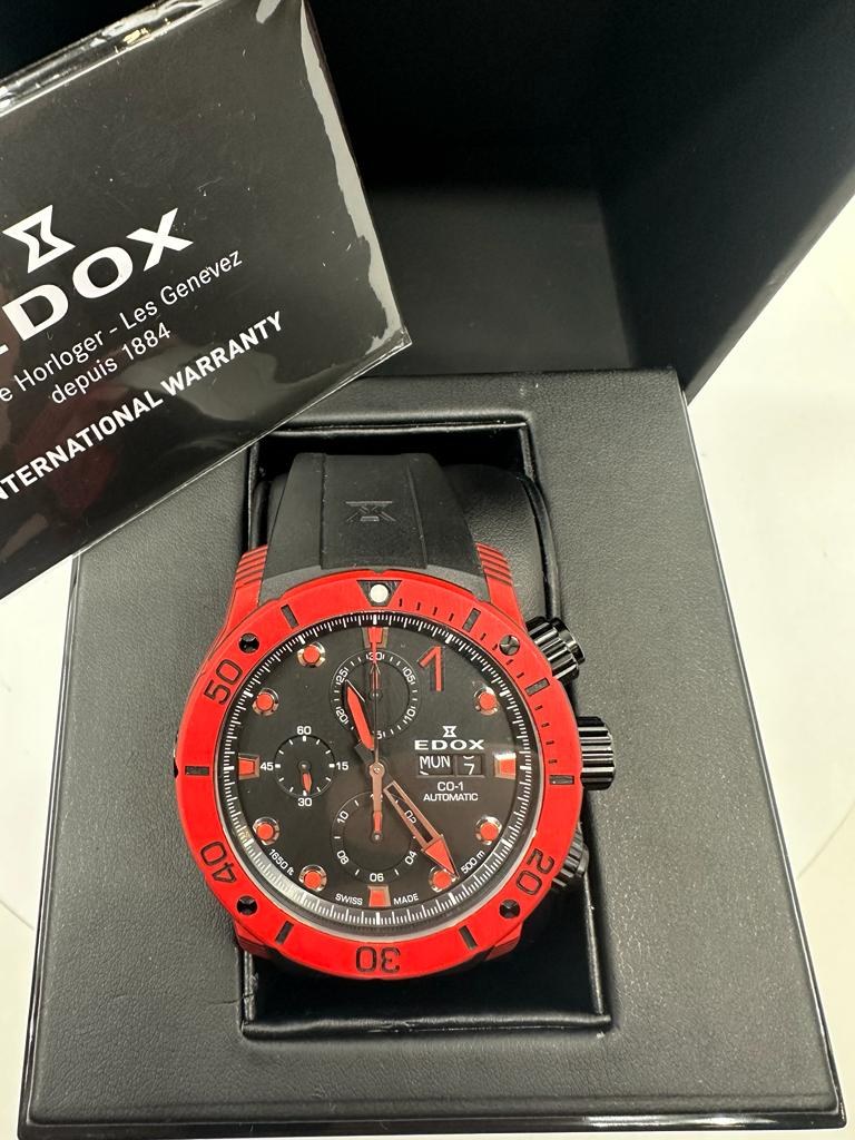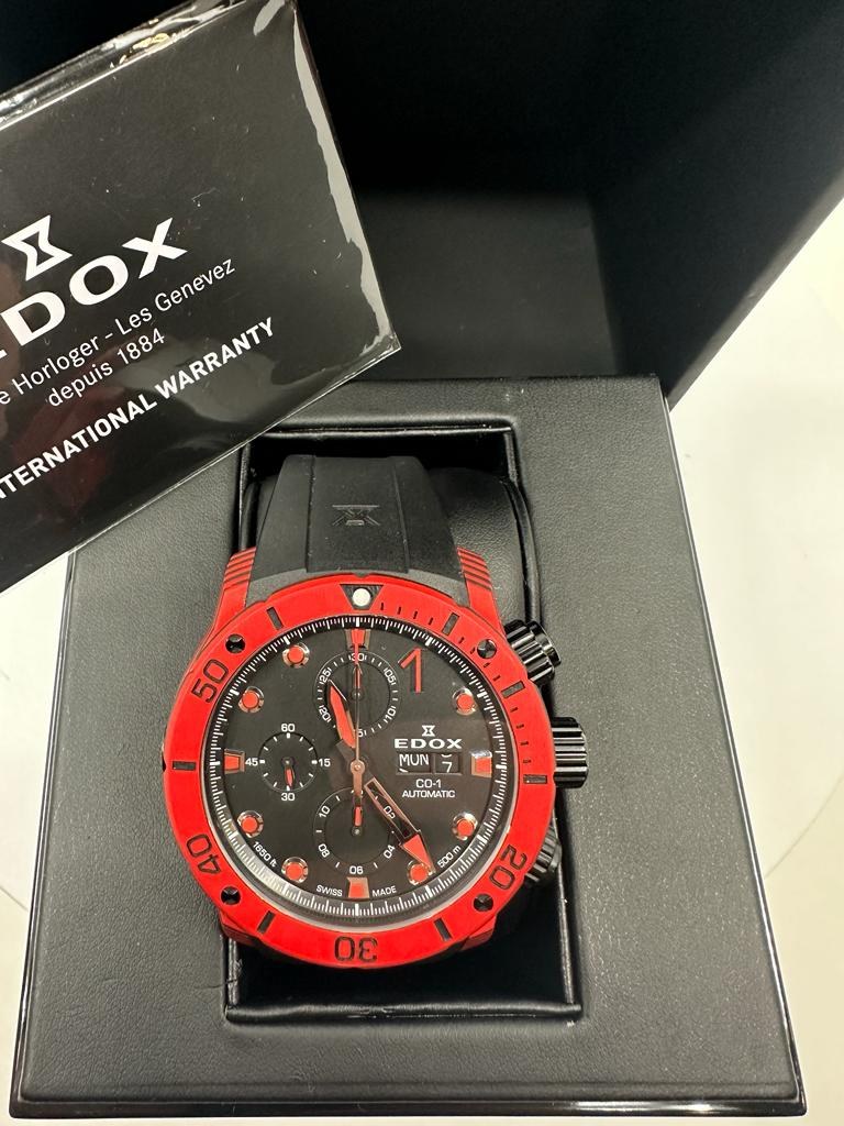 Edox chronoffshore 1 carbon Reference number 01125 CLNRN NINRO Winding Automatic Case material Carbon Strap material Rubber Year of production 2022 Kit With original box and original documents Winding Automatic Case material Carbon Diameter 45 mm Waterproof 50 ATM Sapphire glass Dial Black Strap Strap material Rubber year 2002 |