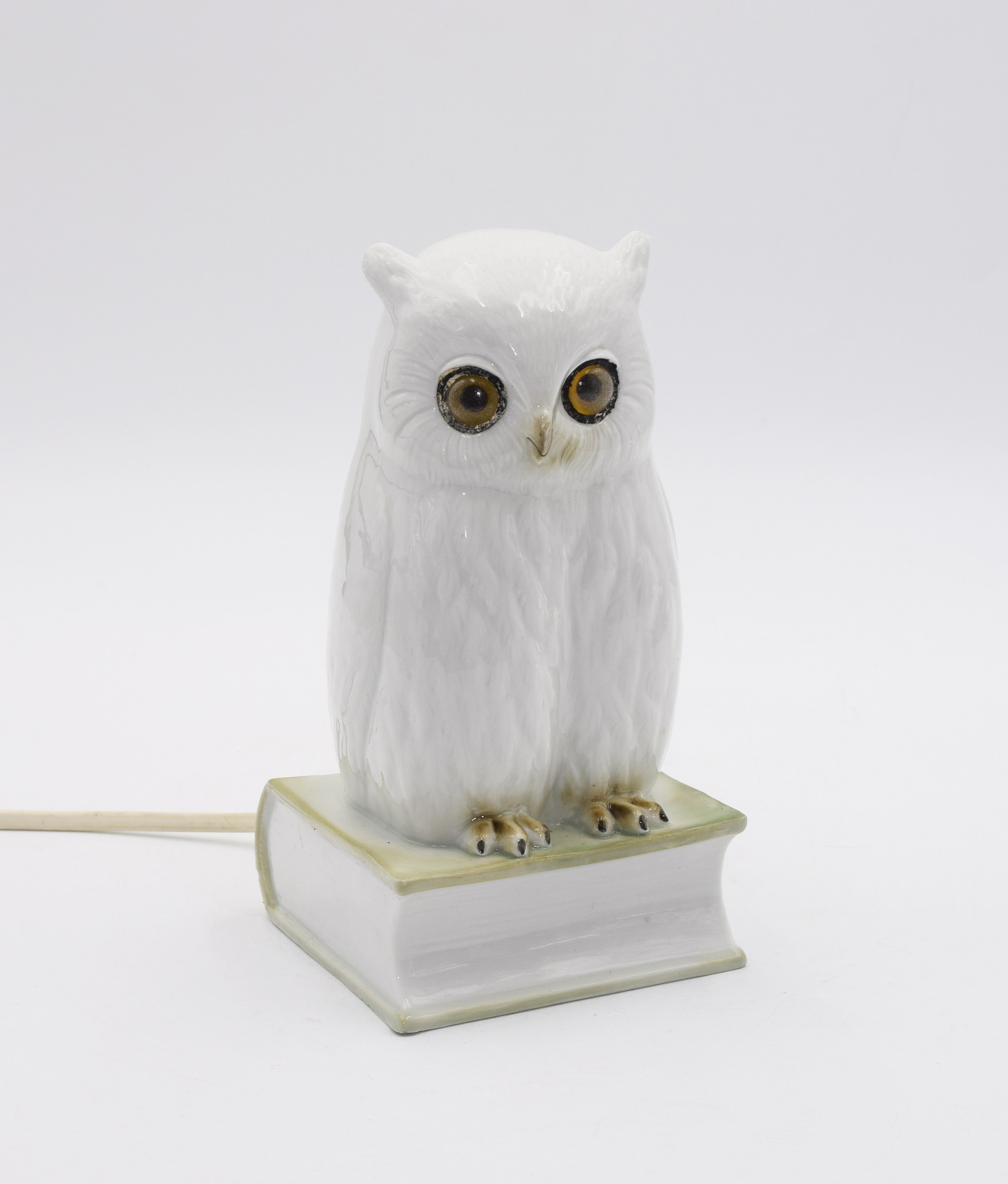 Lampka - urządzenie oczyszczające powietrze (pochłaniacz dymu), zasilane elektrycznie, w formie stojącej na książce sowy śnieżnej, z żółtymi, świecącymi oczami. Urządzenia pochłaniające dym nikotynowy, były popularne w Niemczech, zwłaszcza w latach 50./60.XXw.