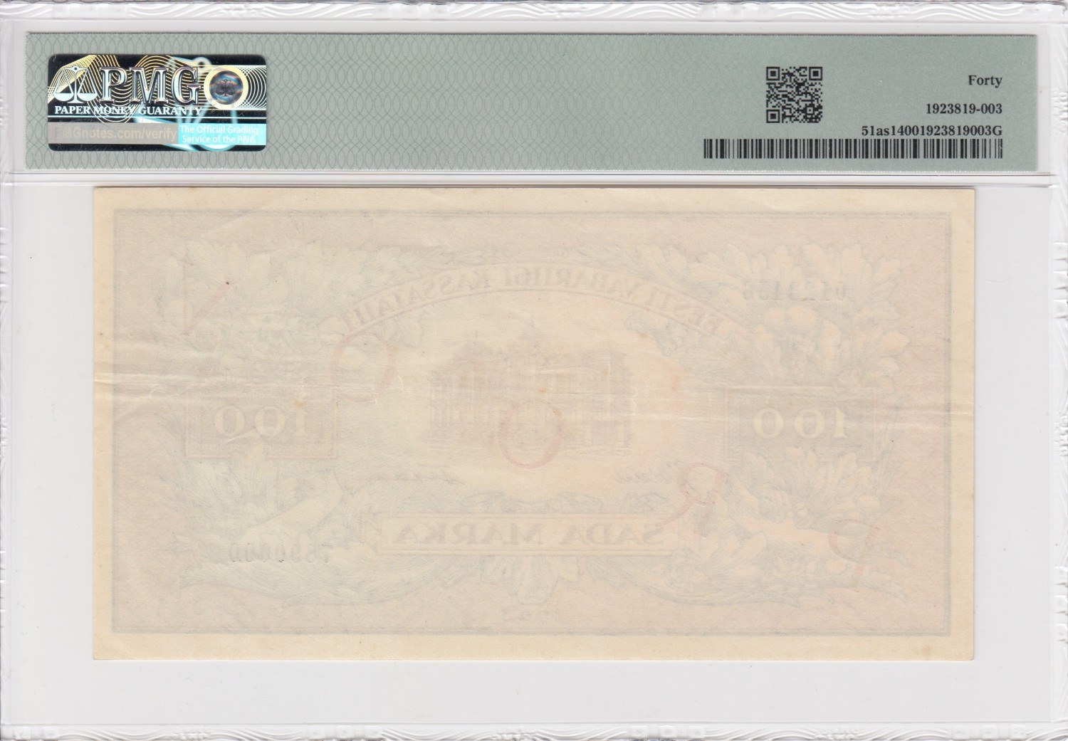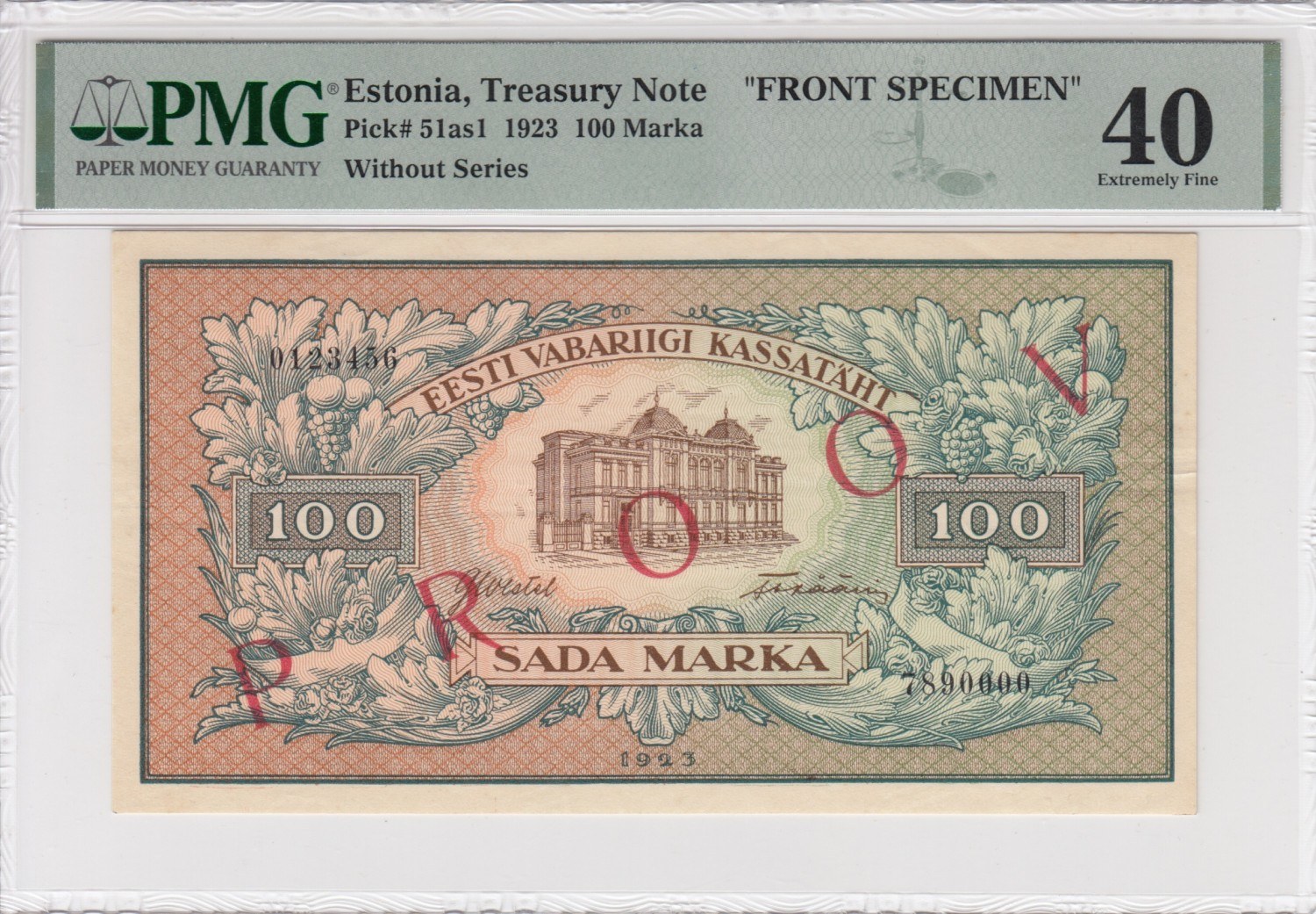 Estonia 100 Marka 1923 - FRONT SPECIMEN - PMG 40 Extremely Fine