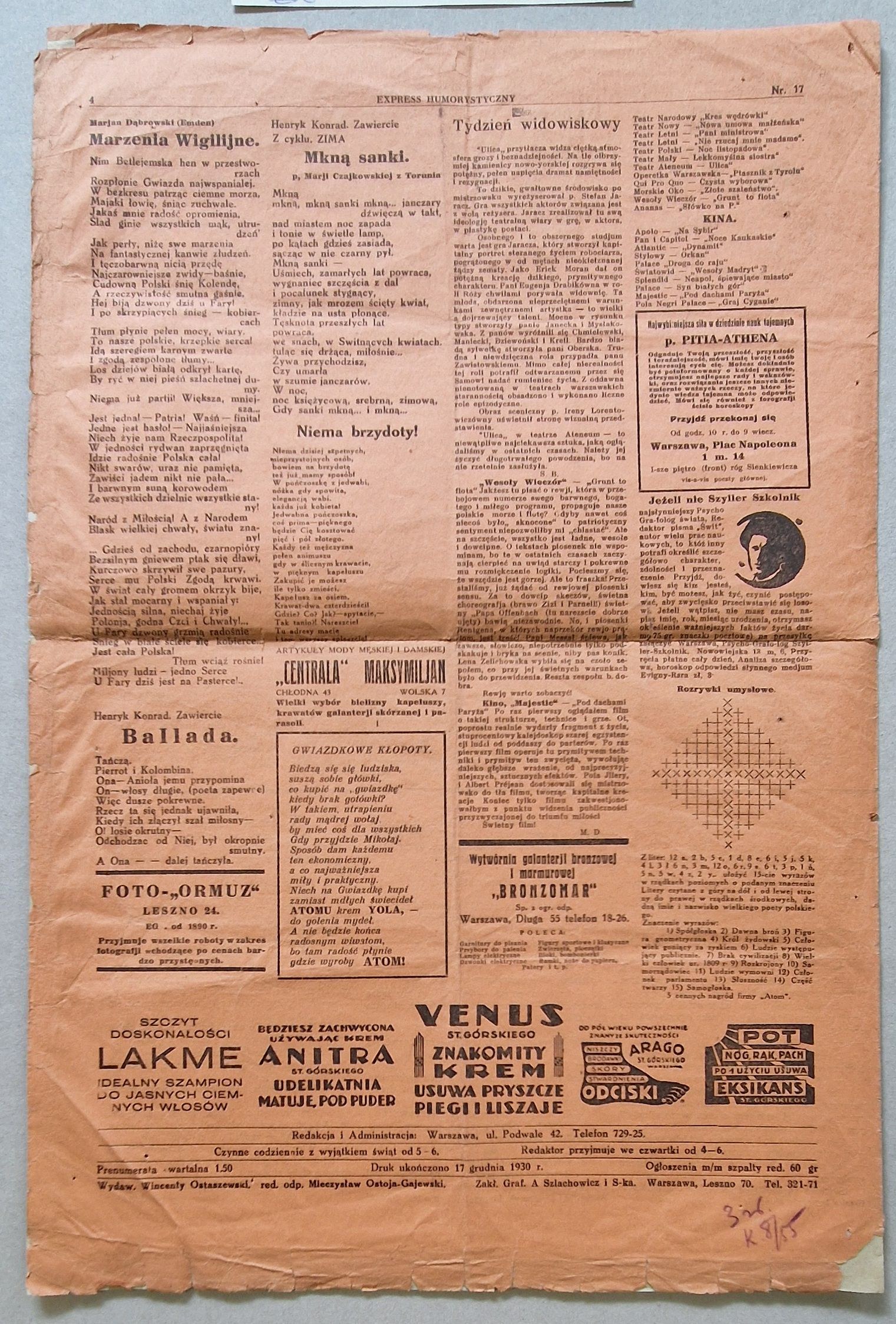Express Humorystyczny. Wesoły kalejdoskop tygodniowy (wychodzi w każdy czwartek).