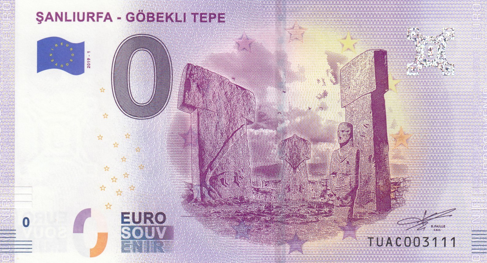 Fantasy banknotes, 0 Euro, 2018, UNC, Şanlıurfa- Göbekli Tepe