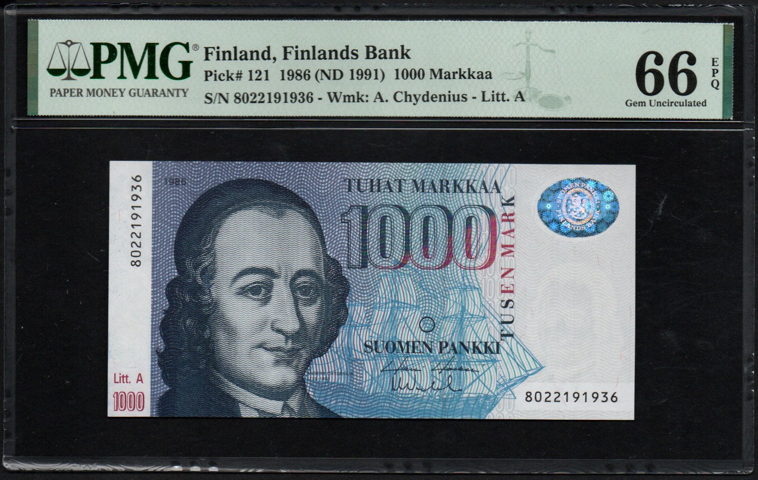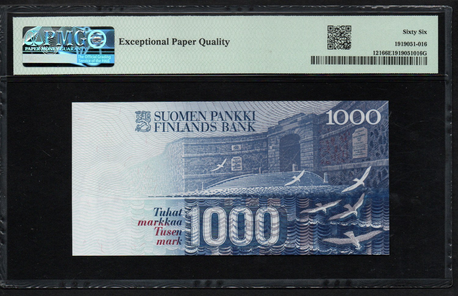 Finland 1000 Markkaa 1986 (ND 1991) - PMG 66 EPQ Gem Uncirculated