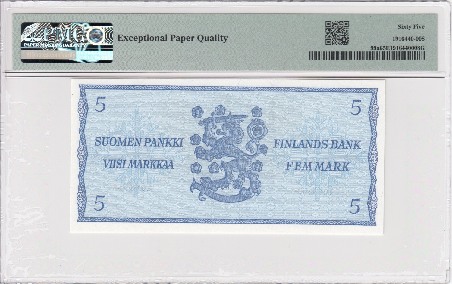 Finland 5 Markkaa 1963 - PMG 65 EPQ Gem Uncirculated