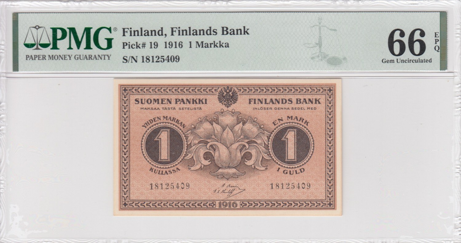 Finland (Finlands Bank) 1 Markka 1916 - PMG 66 EPQ Gem Uncirculated