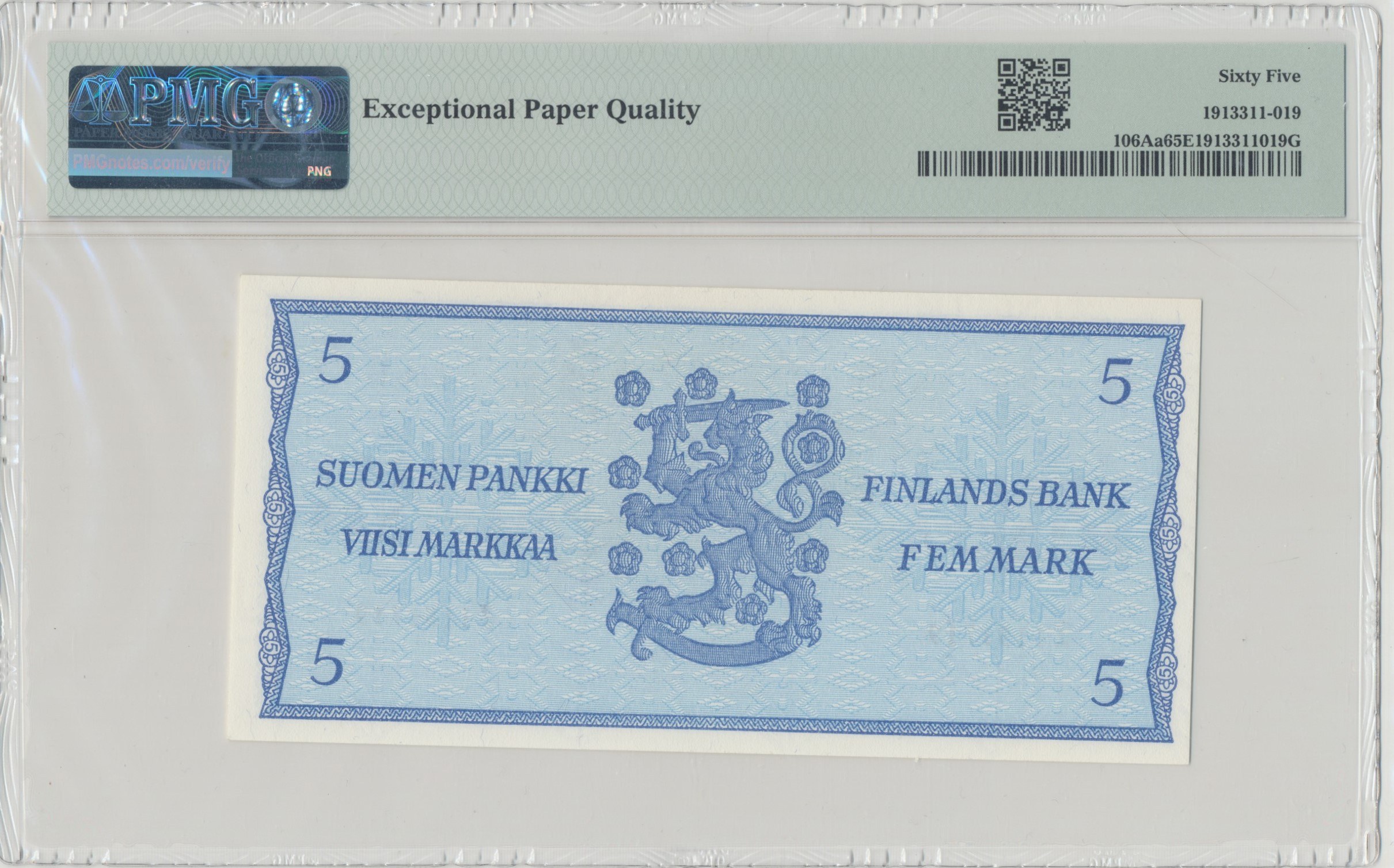 Perfekcyjnie zachowany banknot poddany ocenie w PMG doceniony wysoką notą 67EPQ.