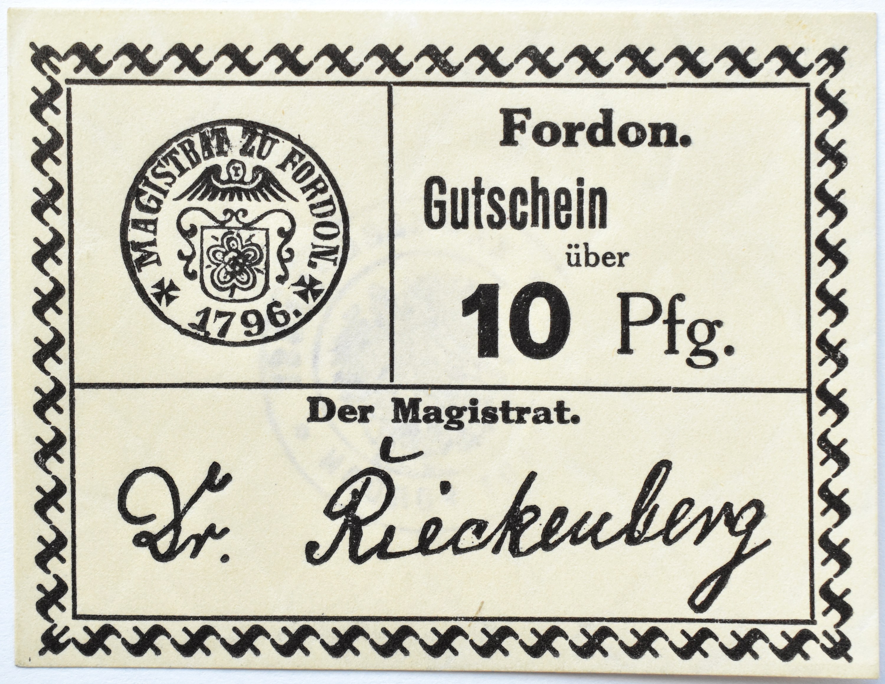 Fordon/Bydgoszcz, Gutschein 10 pfennig 1918, nowodruk