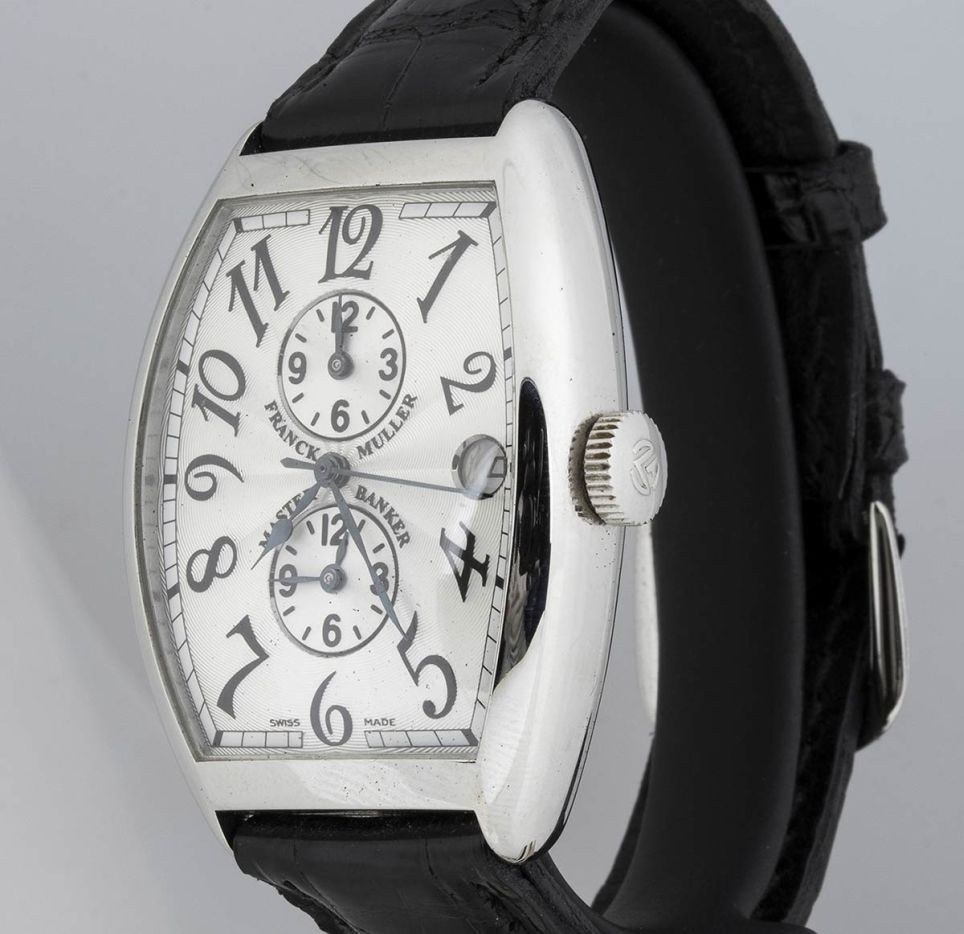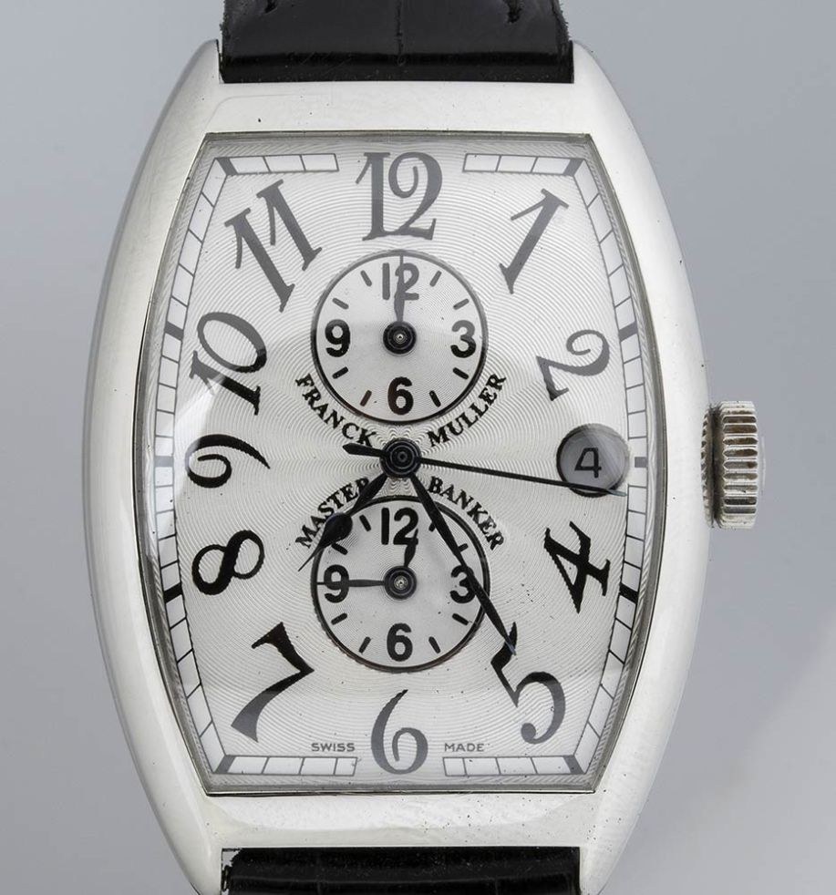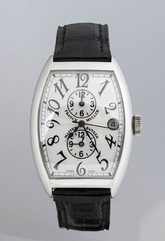 stainless steel case, silvered dial with Arabic numerals and black hands, sapphire crystal. Automatic movement. Strap with pin buckle.