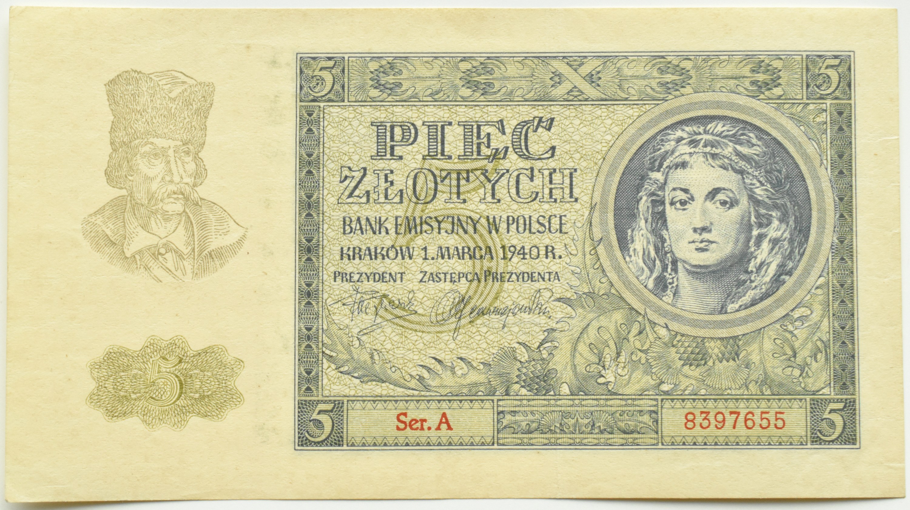 Generalna Gubernia, 5 złotych 1940, Kraków, seria A
