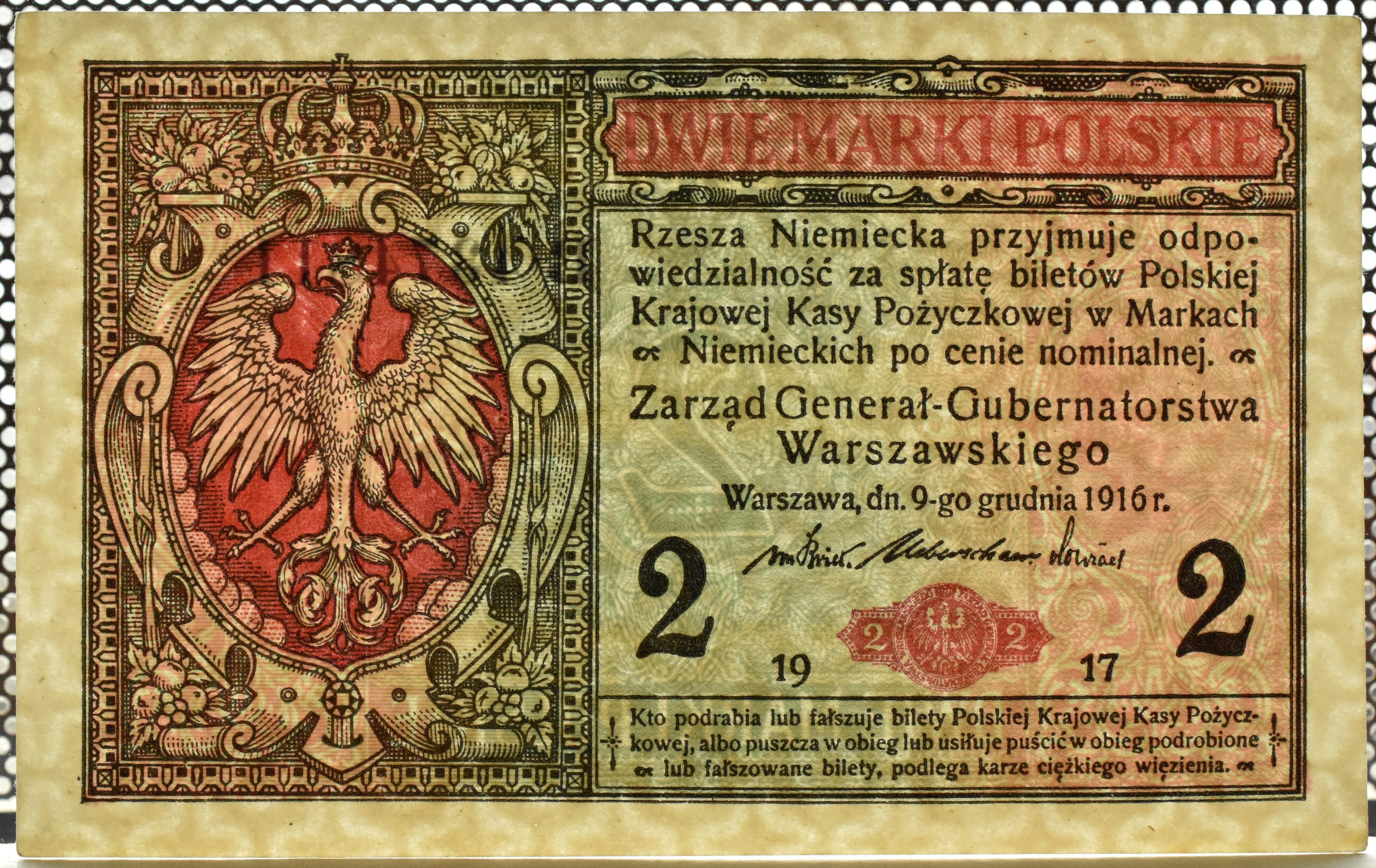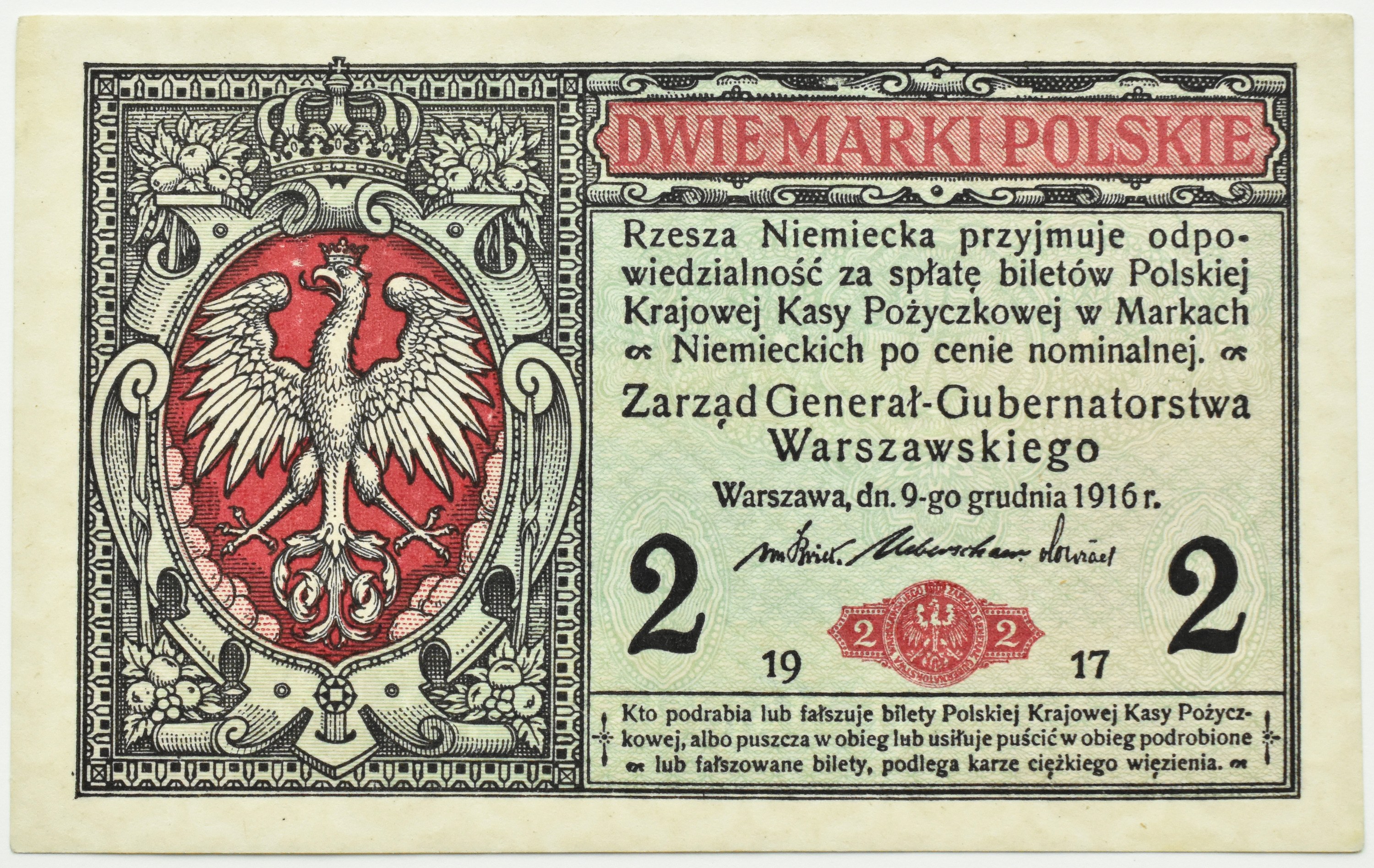 Generalne Gubernatorstwo, 2 marki 1916 "Generał", Warszawa, seria B, UNC