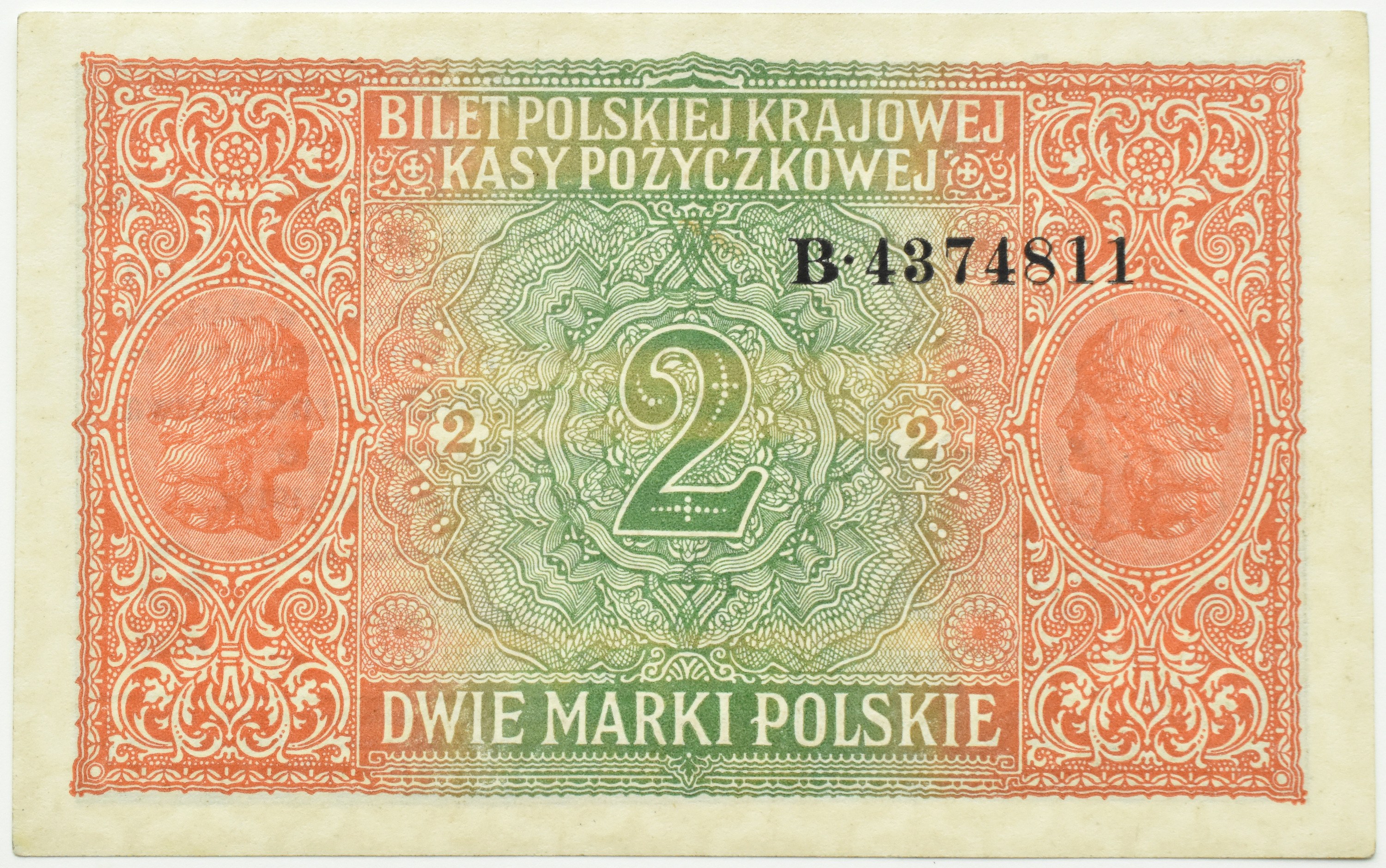 Generalne Gubernatorstwo, 2 marki 1916, "Generał", seria B, Warszawa, UNC